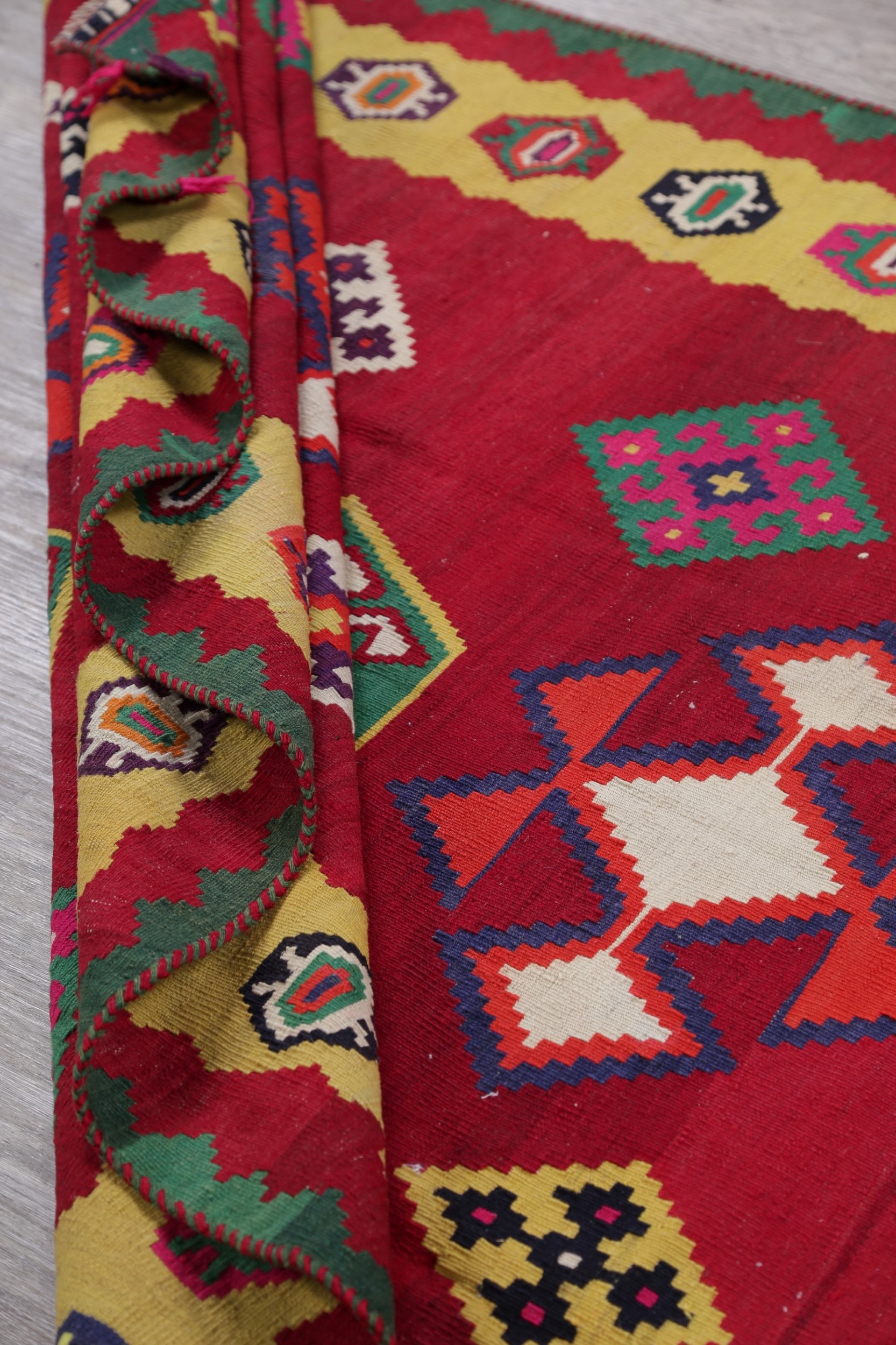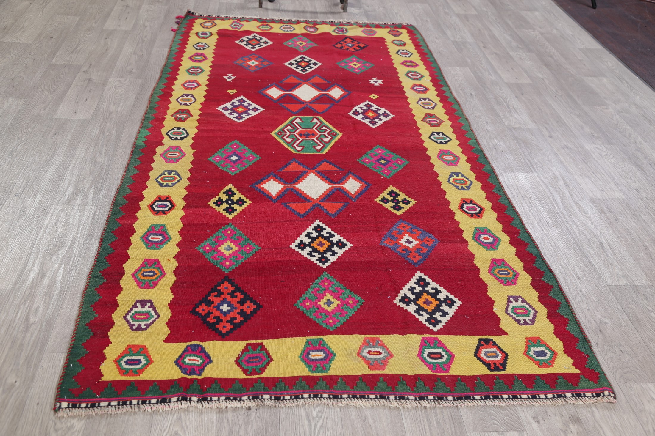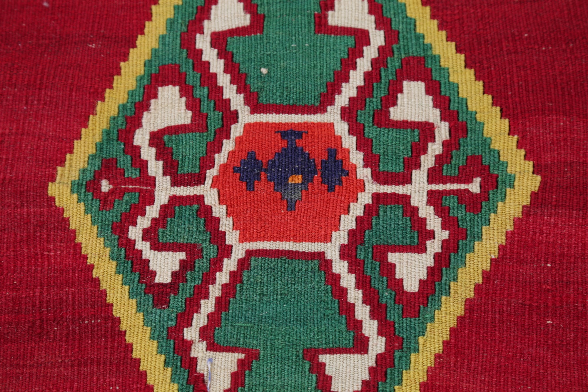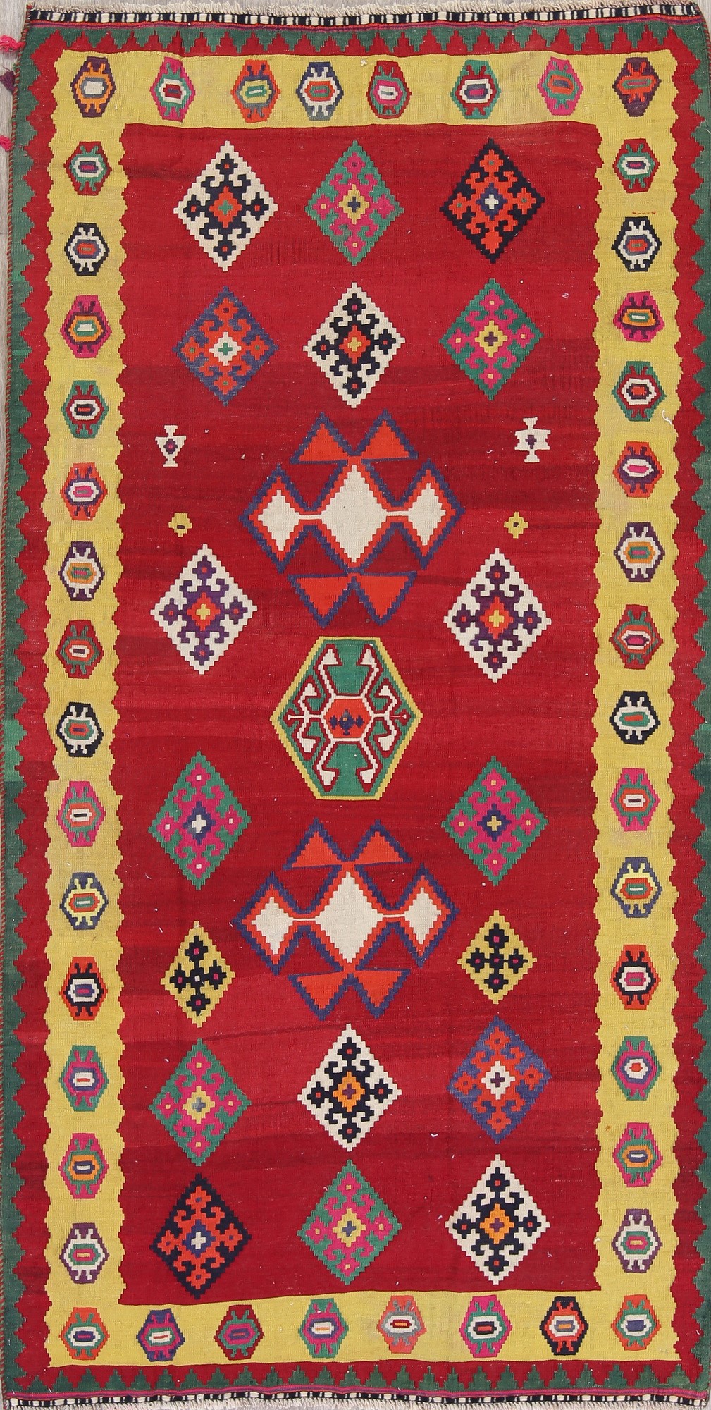 Vintage Geometric Kilim Tribal Oriental Runner Rug Reversible Hand-Woven 4x9 ft