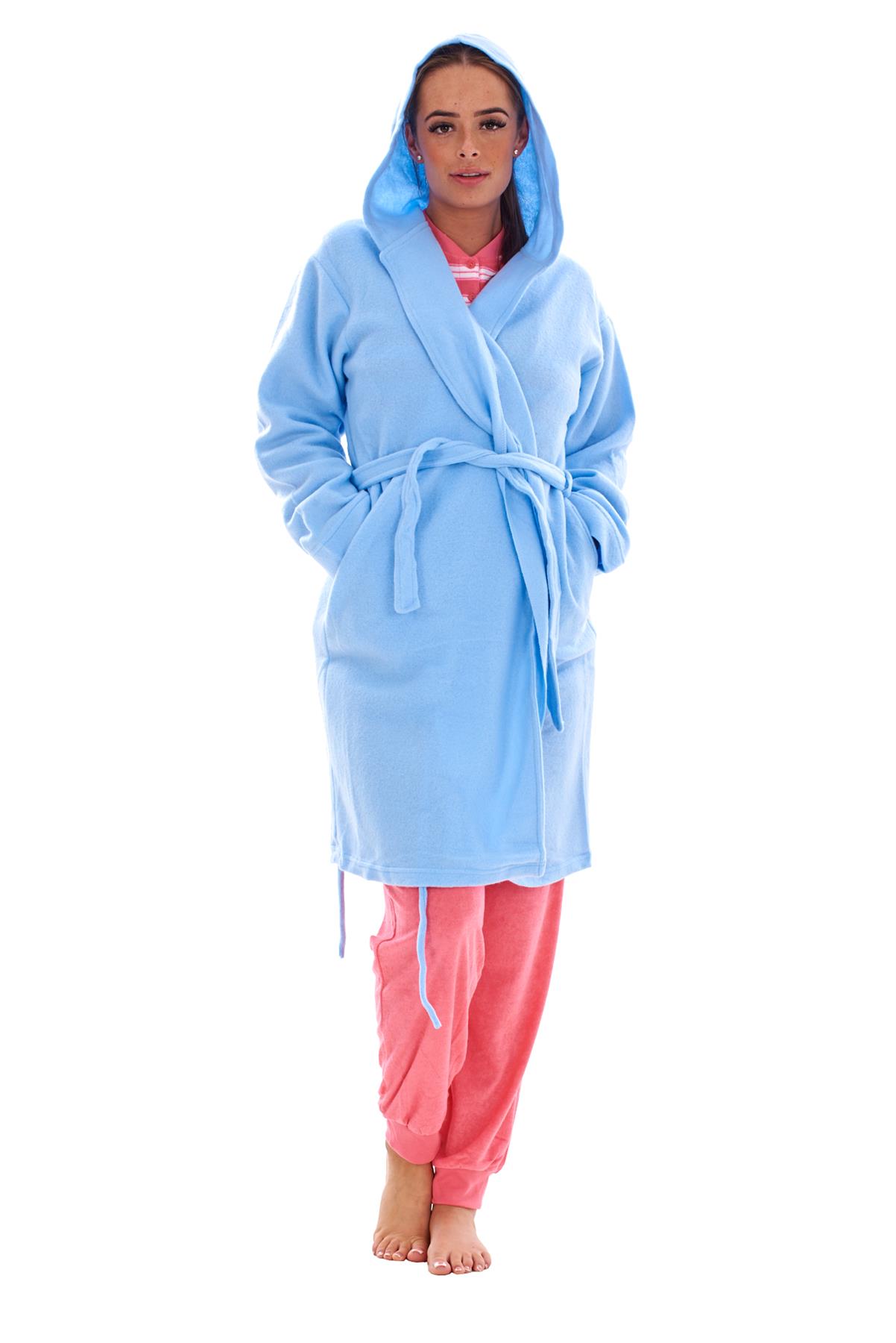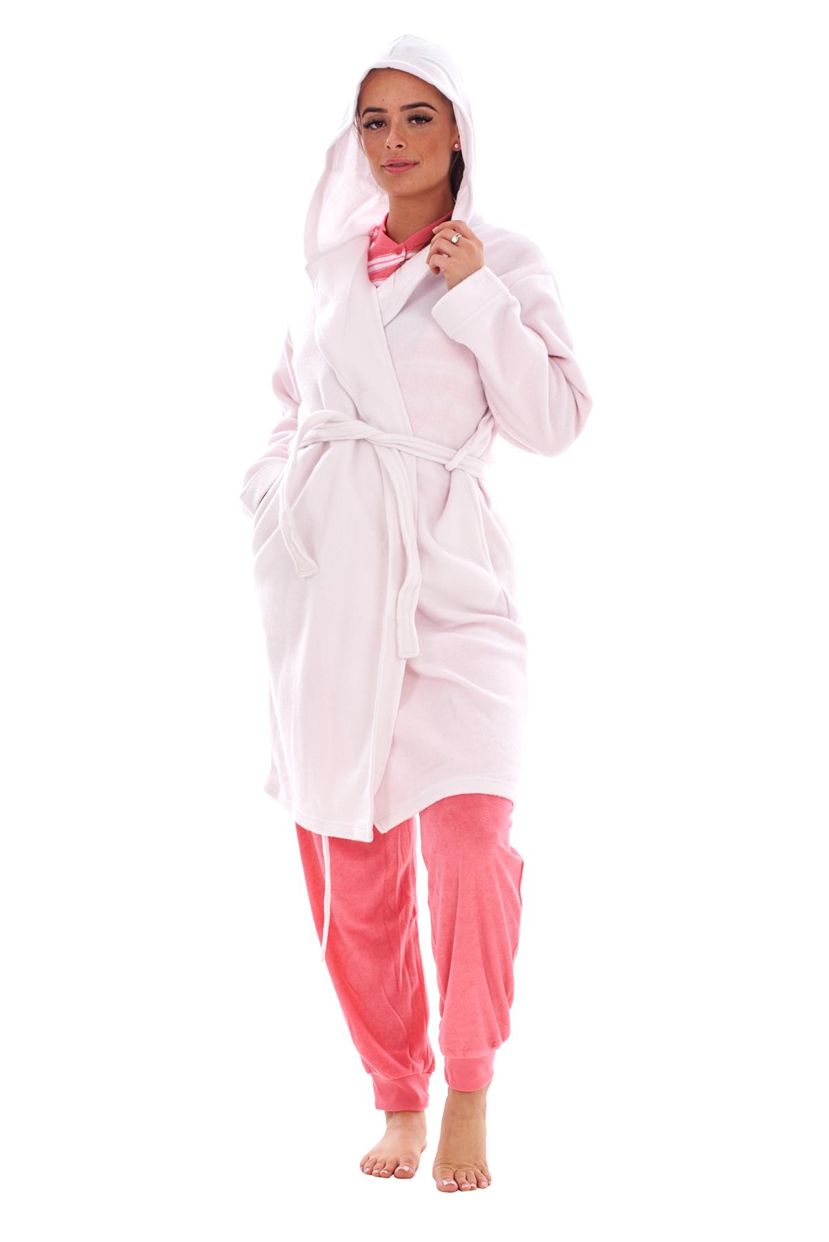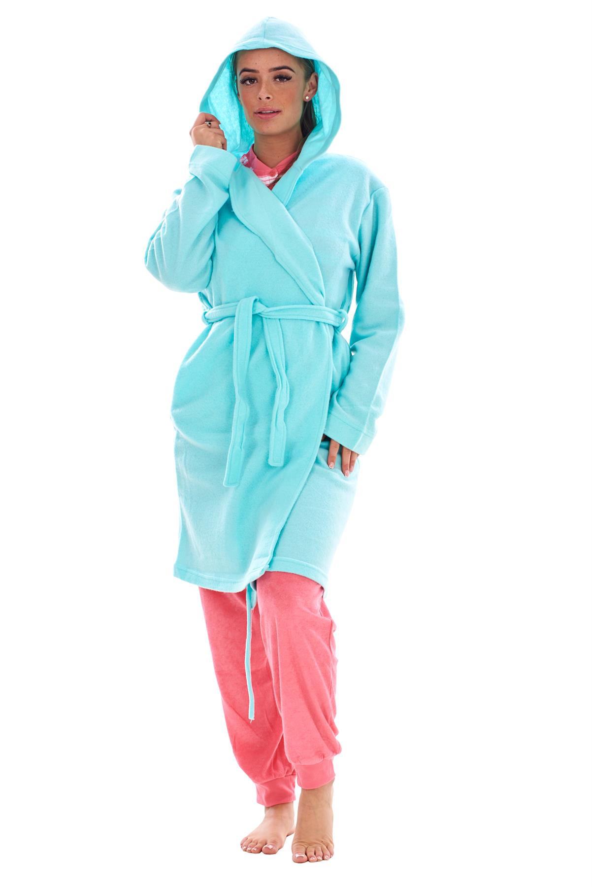 - Ladies Fleece Hooded Dressing Gown Soft Warm Bathrobe Housecoat Nightwear Robe