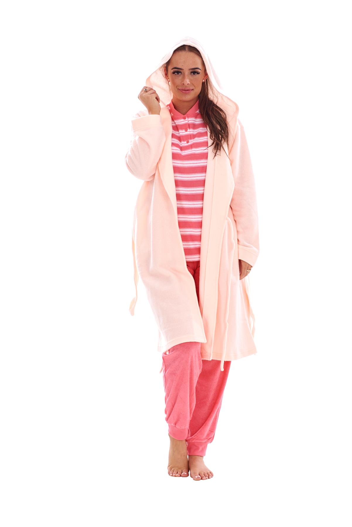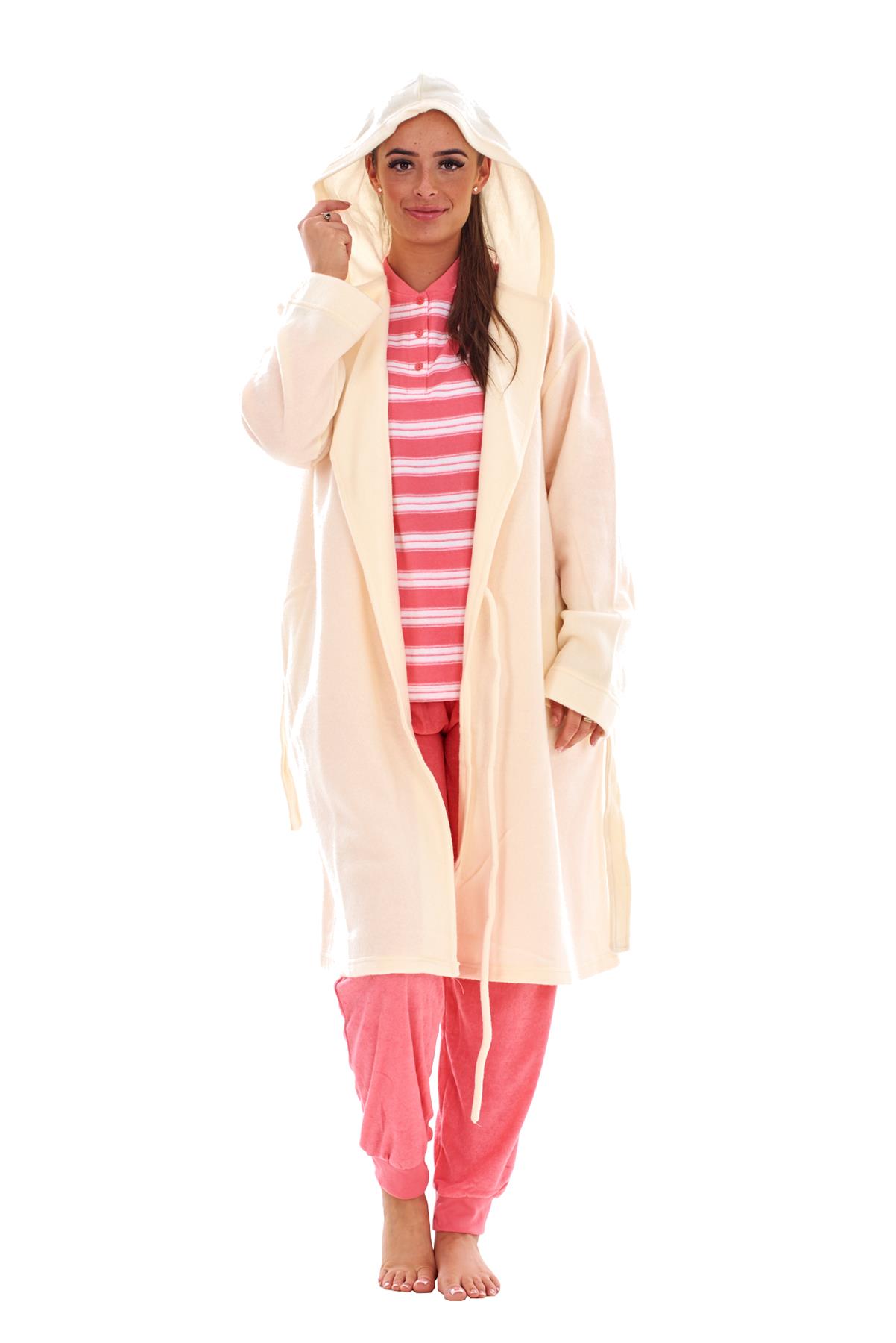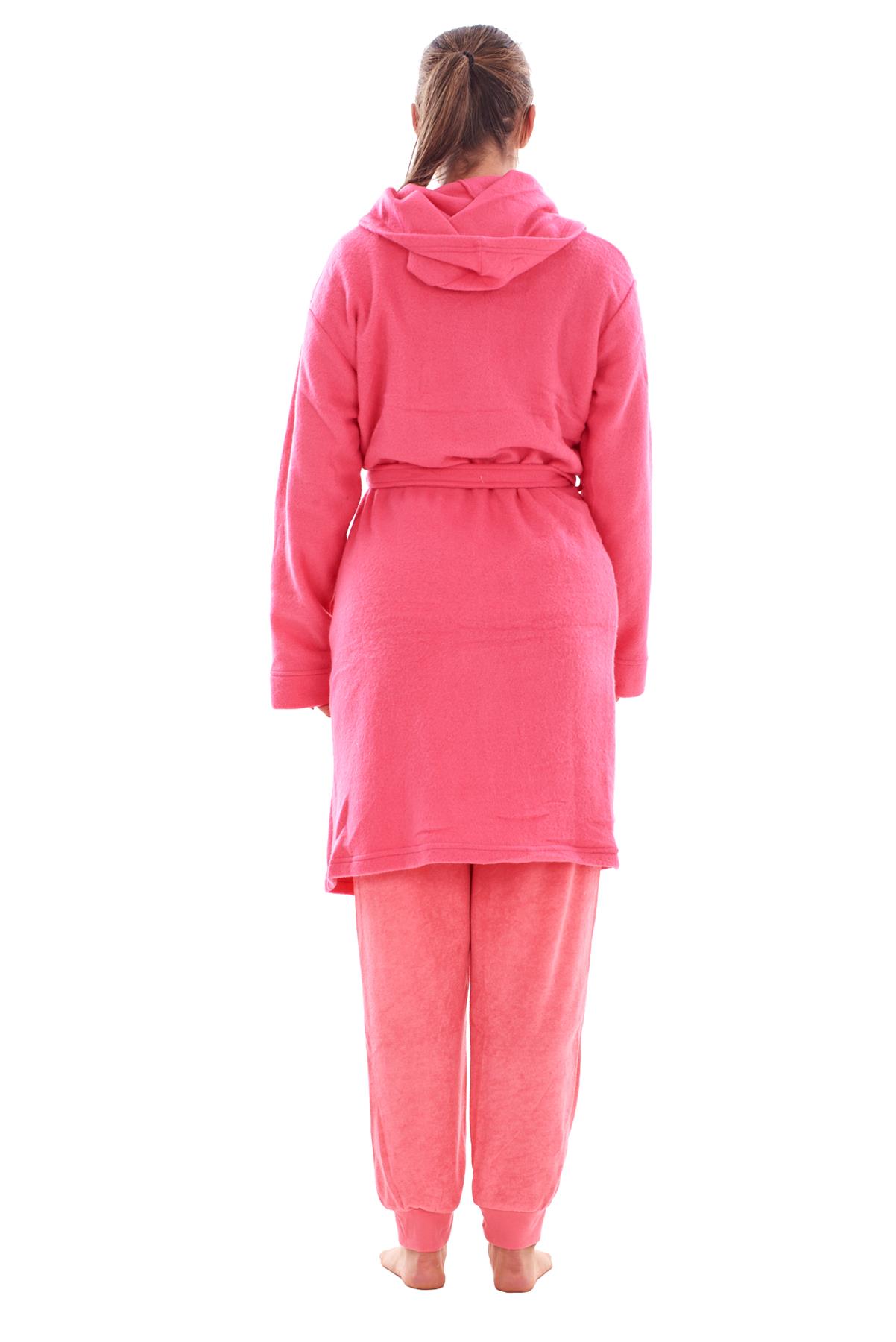 - Ladies Fleece Hooded Dressing Gown Soft Warm Bathrobe Housecoat Nightwear Robe