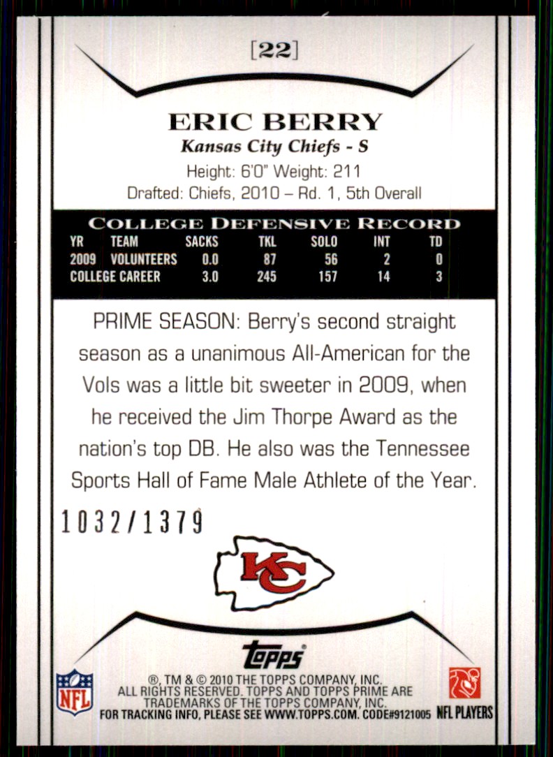 | 2010 Topps Prime Retail Bronze /1379 22 Eric Berry |