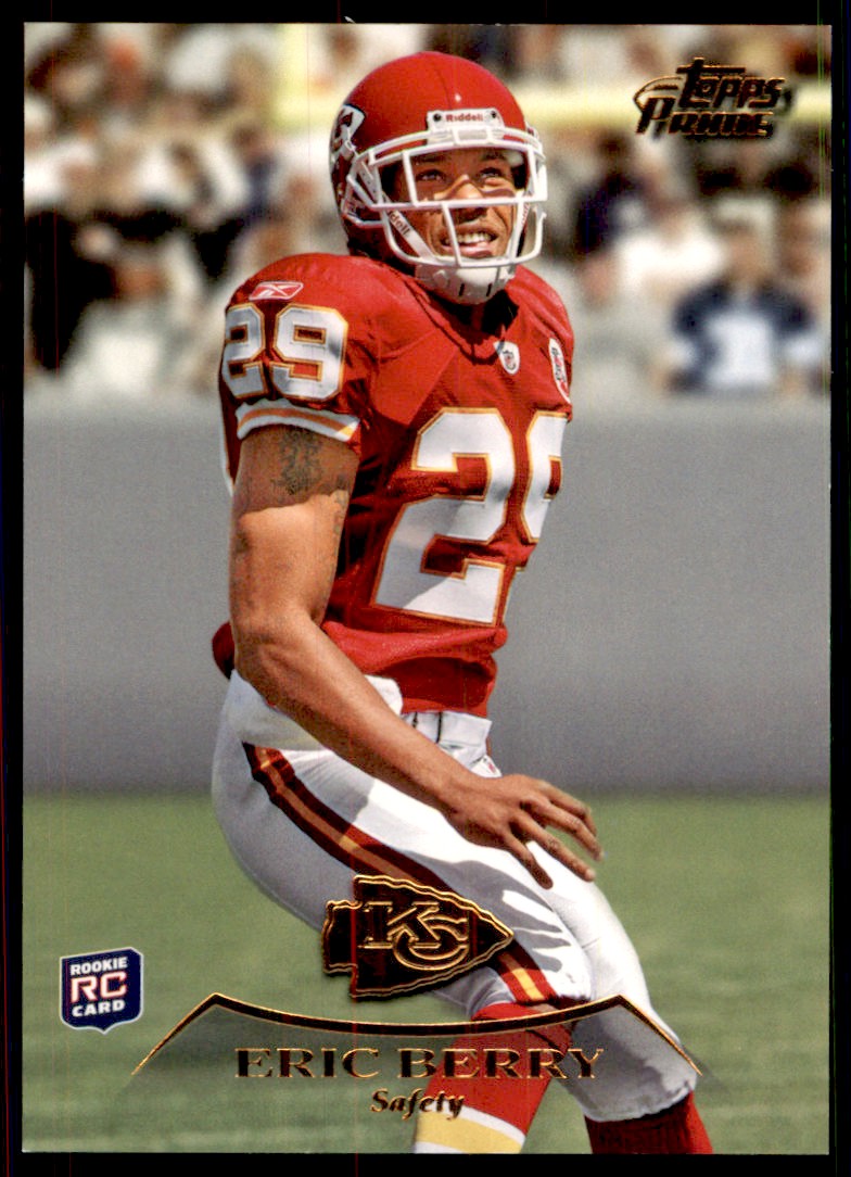 | Description: | Eric Berry | | Category: | Football | | Year: | 2010 | | Product: | Topps Prime Retail Bronze | | Team: | Kansas City Chiefs | | Card Number: | 22 | | Rookie: | Yes | | Serial Number: | /1379 | | Dimensions: | 3½" x 2½" |