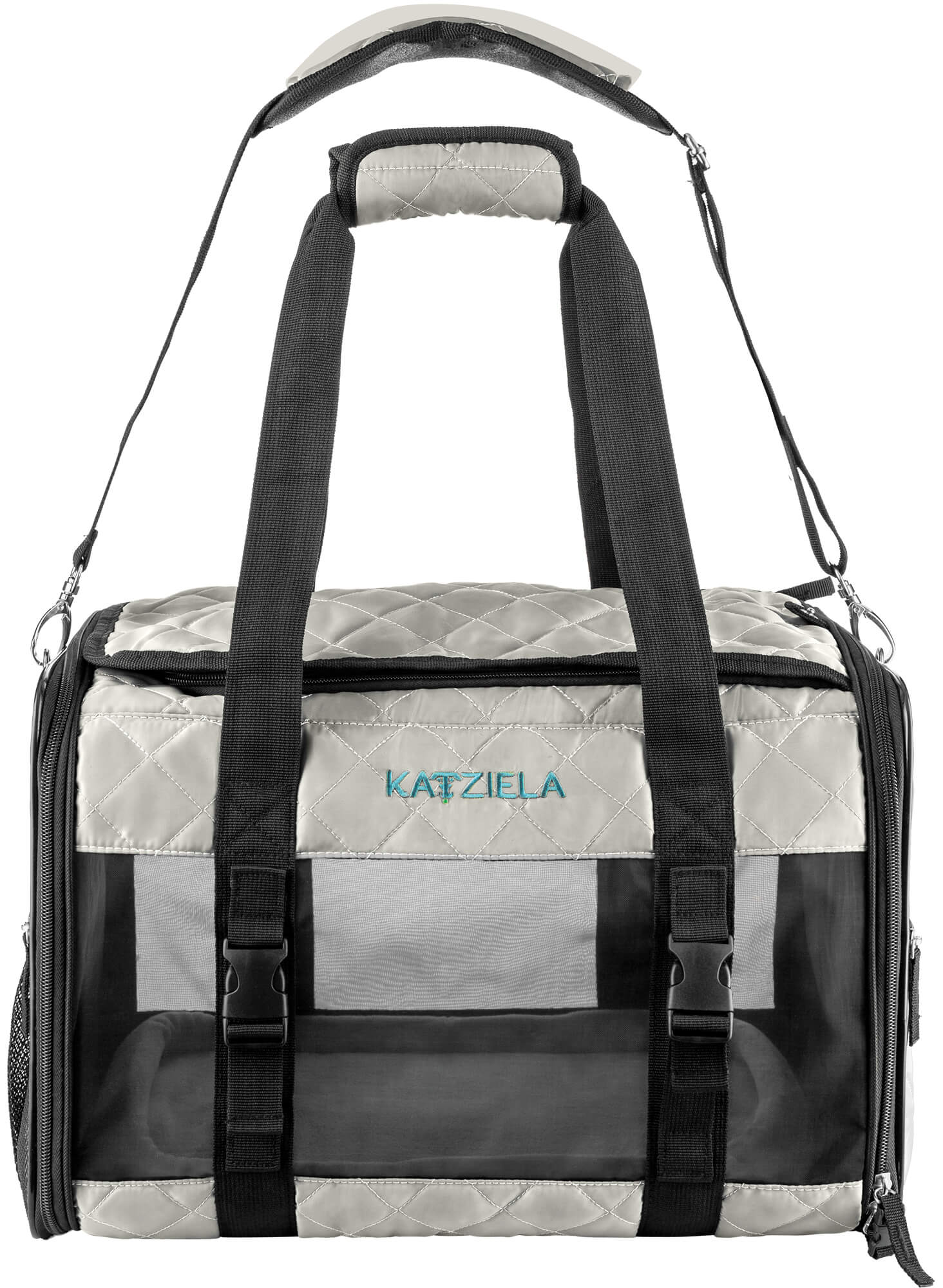 Commercial airline travel is stressful - but it doesn't have to be that way for your pet. Katziela's innovative, custom-designed pet carriers make under-seat confinement for cats and dogs into a much more tolerable experience, so much so that we think you might be a little envious. With luxurious and comfortable quilted siding and an extra-soft bed, this carrier is the perfect way to transport puppies, kittens, small adult dogs, cats, or even a guinea pig or bunny in traveling comfort while flying domestically, to Alaska or the Southwest, or even overseas.