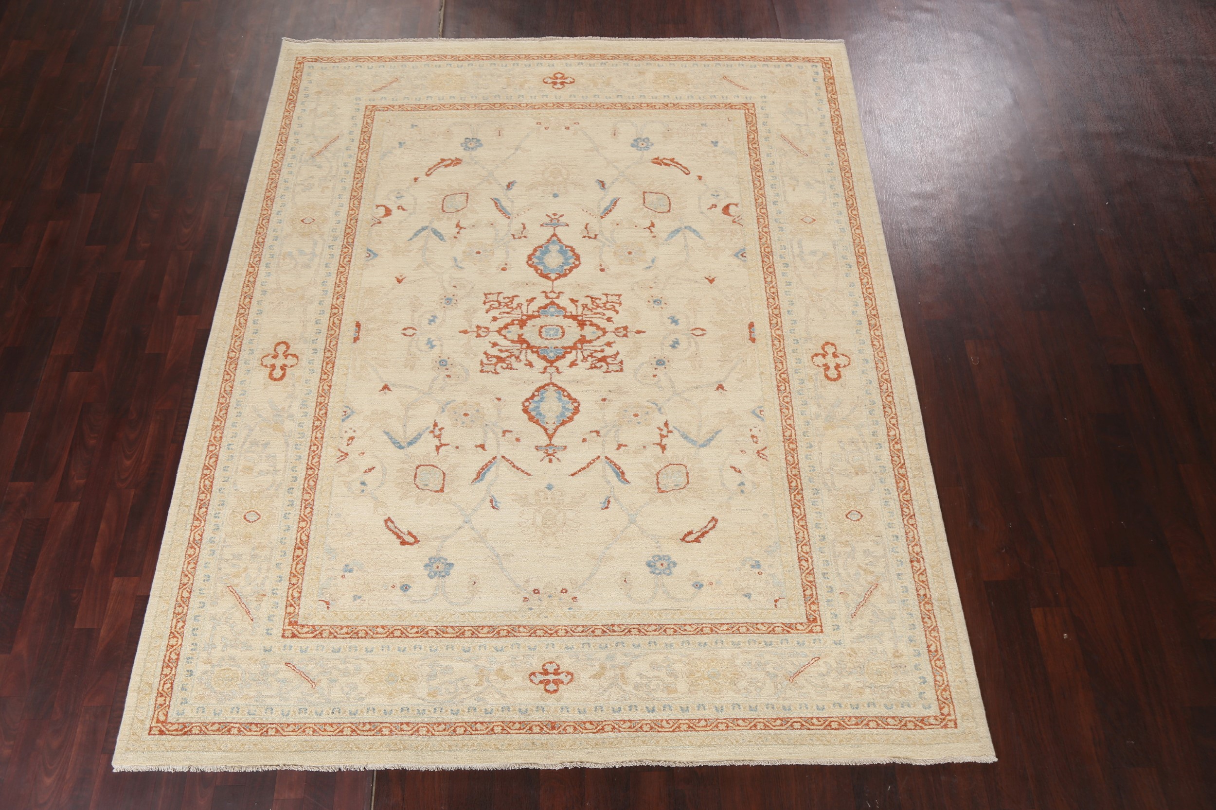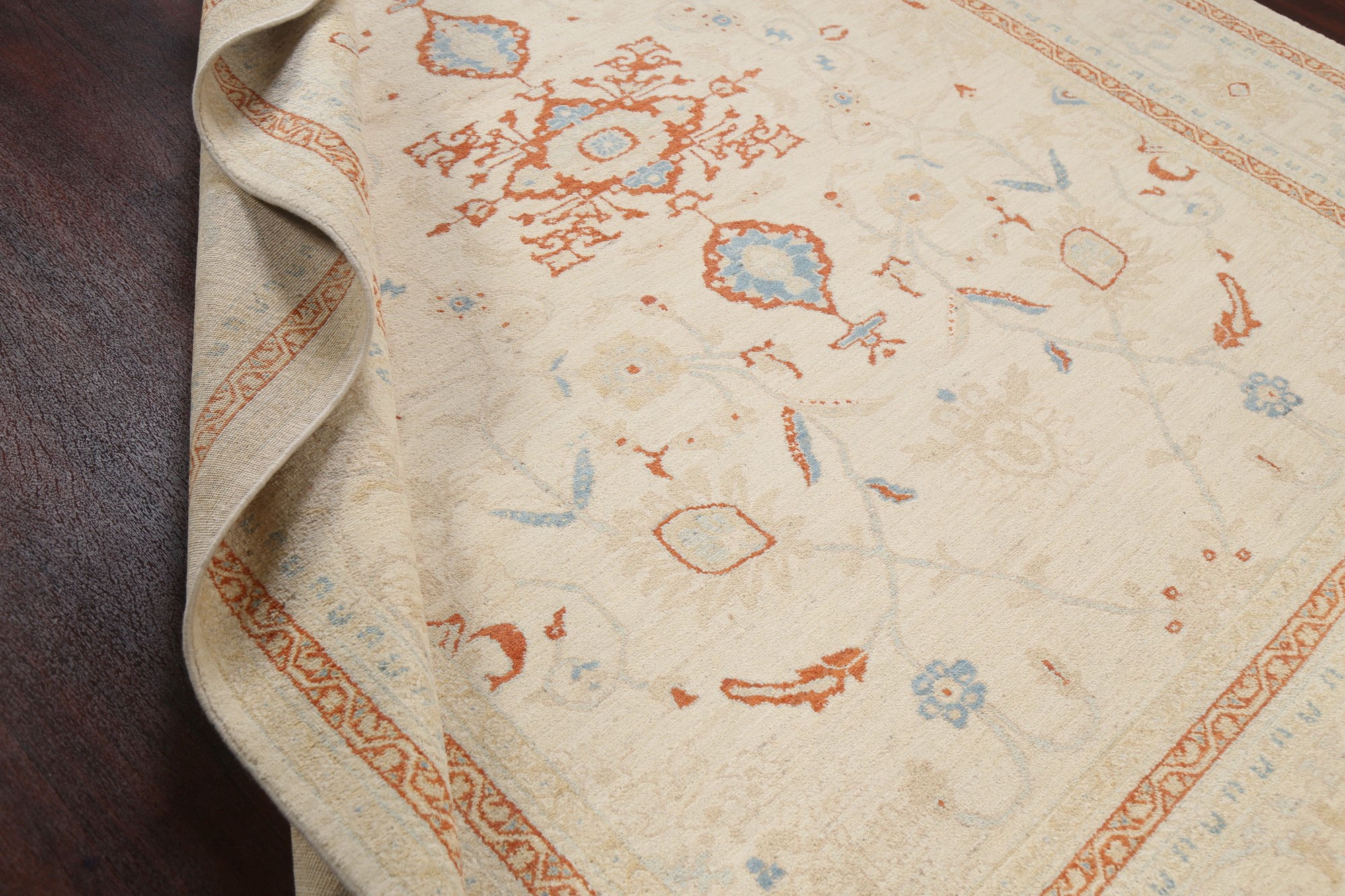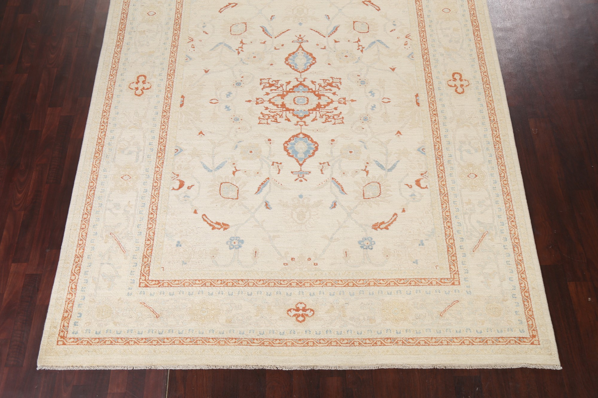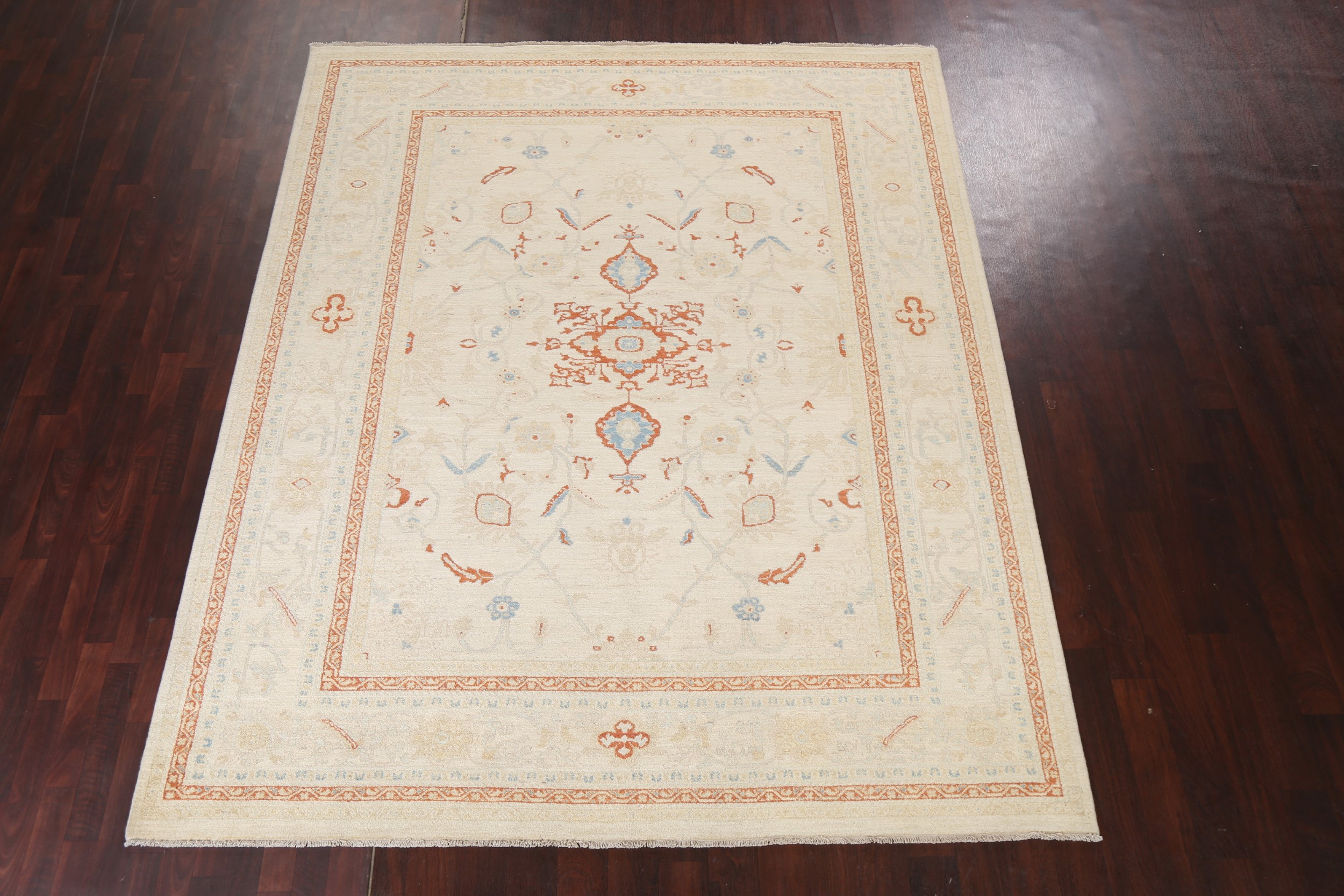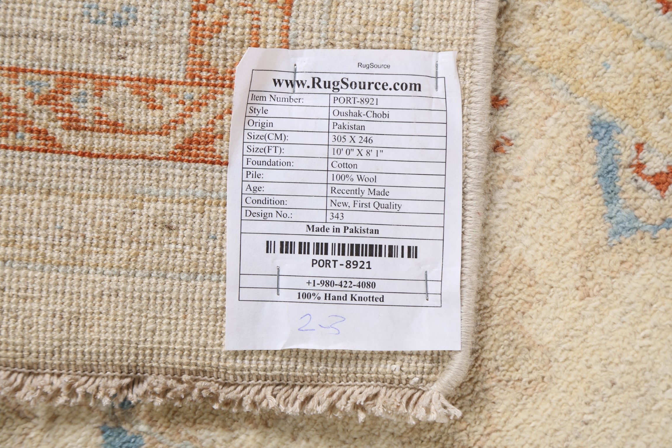 Geometric Floral Chobi-Peshawar Area Rug 8x10 Hand-knotted Wool Ivory Carpet