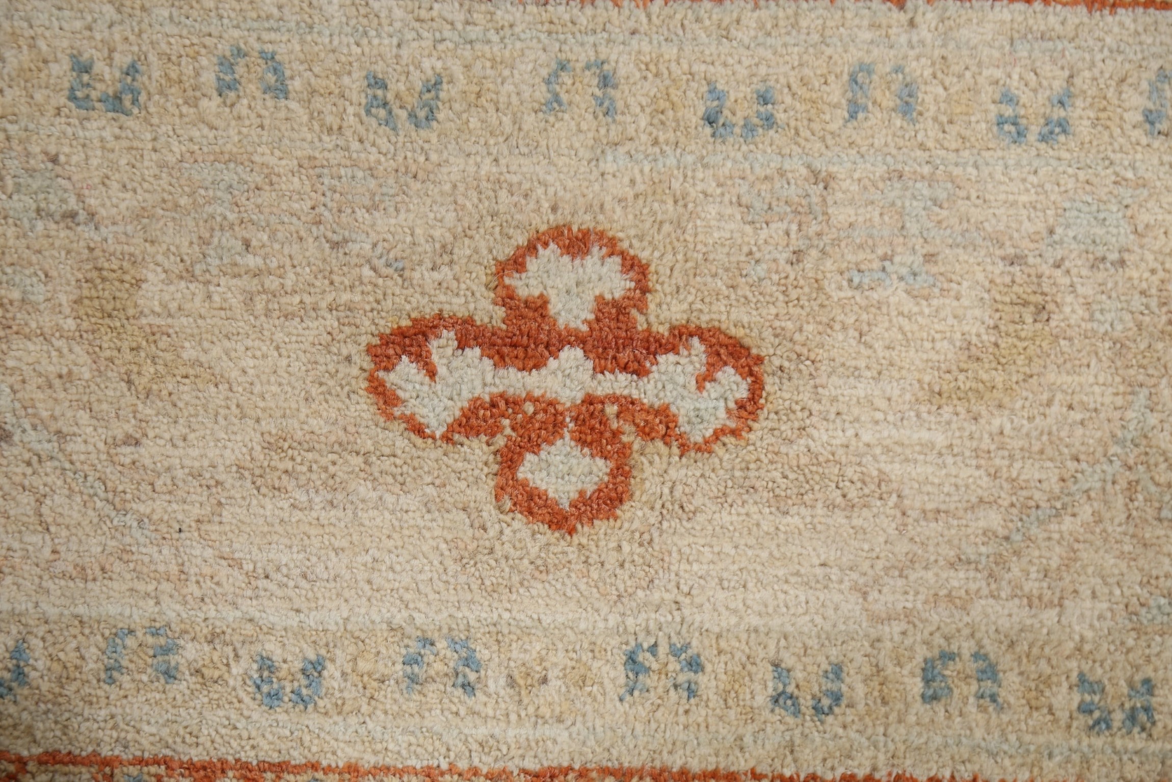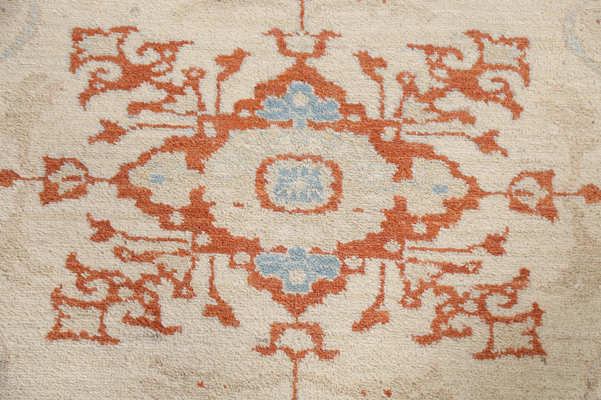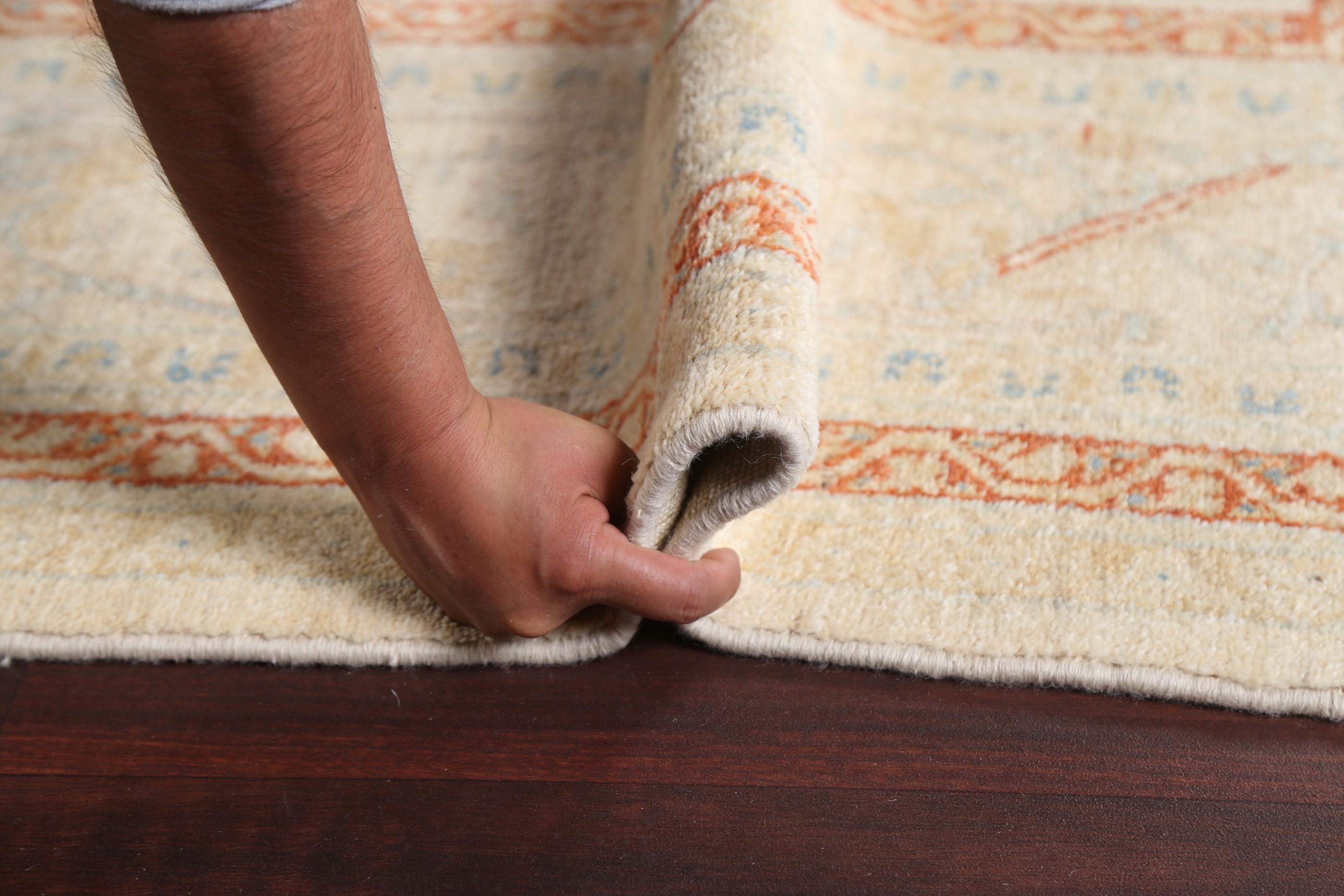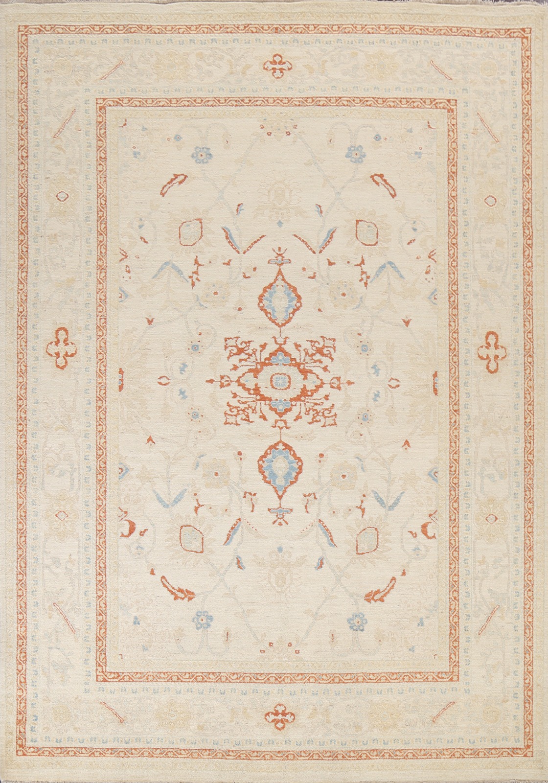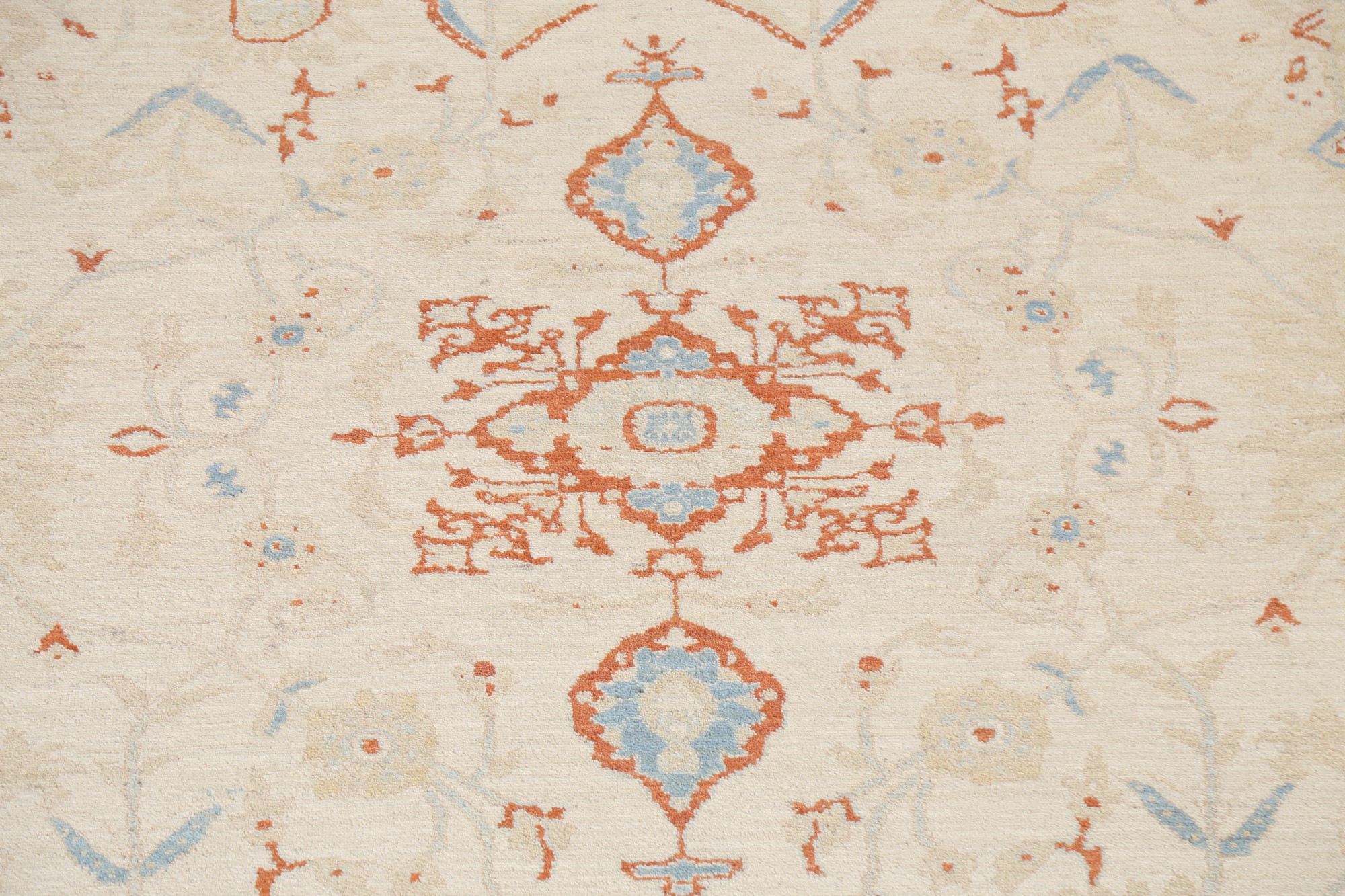 Geometric Floral Chobi-Peshawar Area Rug 8x10 Hand-knotted Wool Ivory Carpet