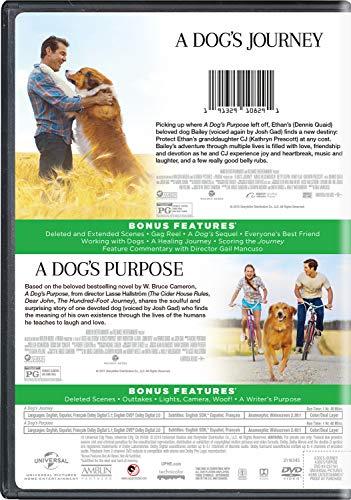 A Dog's Journey: Picking up where A Dog's Purpose left off, Ethan's (Dennis Quaid) beloved dog Bailey (voiced again by Josh Gad) finds a new destiny: Protect Ethan's granddaughter CJ (Kathryn Prescott) at any cost. Bailey's adventure through multiple lives is filled with love, friendship and devotion as he and CJ experience joy and heartbreak, music and laughter, and a few really good belly rubs. A Dog's Purpose: Based on the beloved bestselling novel by W. Bruce Cameron, A Dog's Purpose, from director Lasse Hallström (The Cider House Rules, Dear John, The Hundred-Foot Journey), shares the soulful and surprising story of one devoted dog (voiced by Josh Gad) who finds the meaning of his own existence through the lives of the humans he teaches to laugh and love.