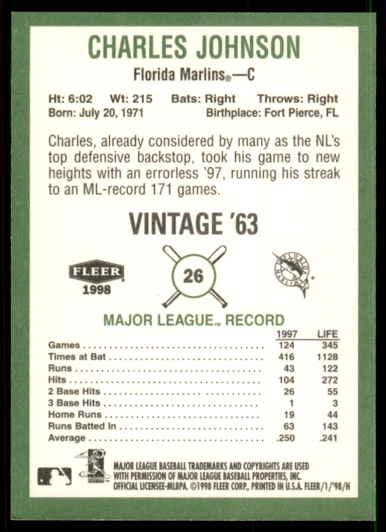 | 1998 Fleer Tradition Vintage 26 Charles Johnson |