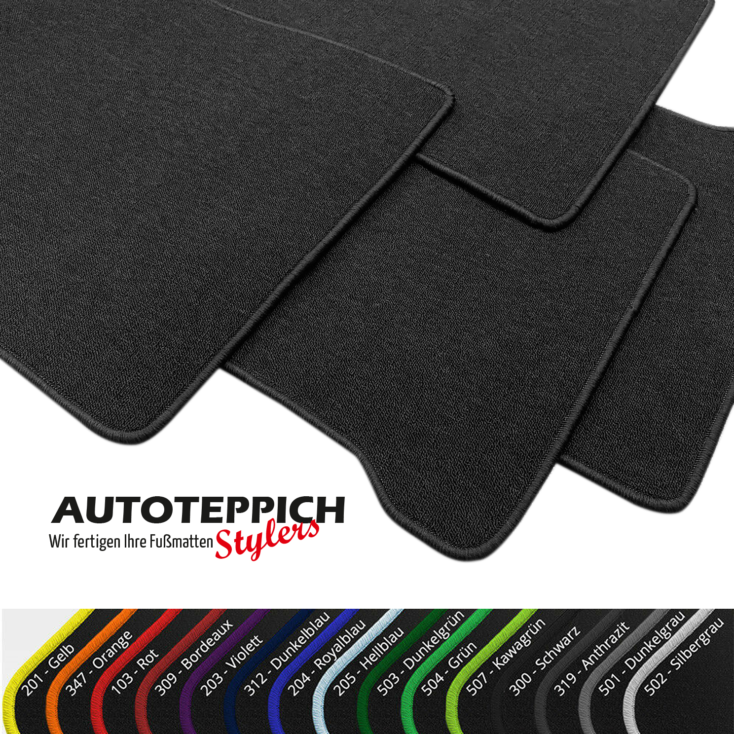 Die Fußmatten werden für Sie passgenau in Wächtersbach/Hessen gefertigt und mit unserem Versandpartner DHL zu Ihnen versendet. Es handelt sich hierbei nicht um Lagerware - alles wird für Sie unter Berücksichtigung Ihrer Farbwünsche für Sie gefertigt!