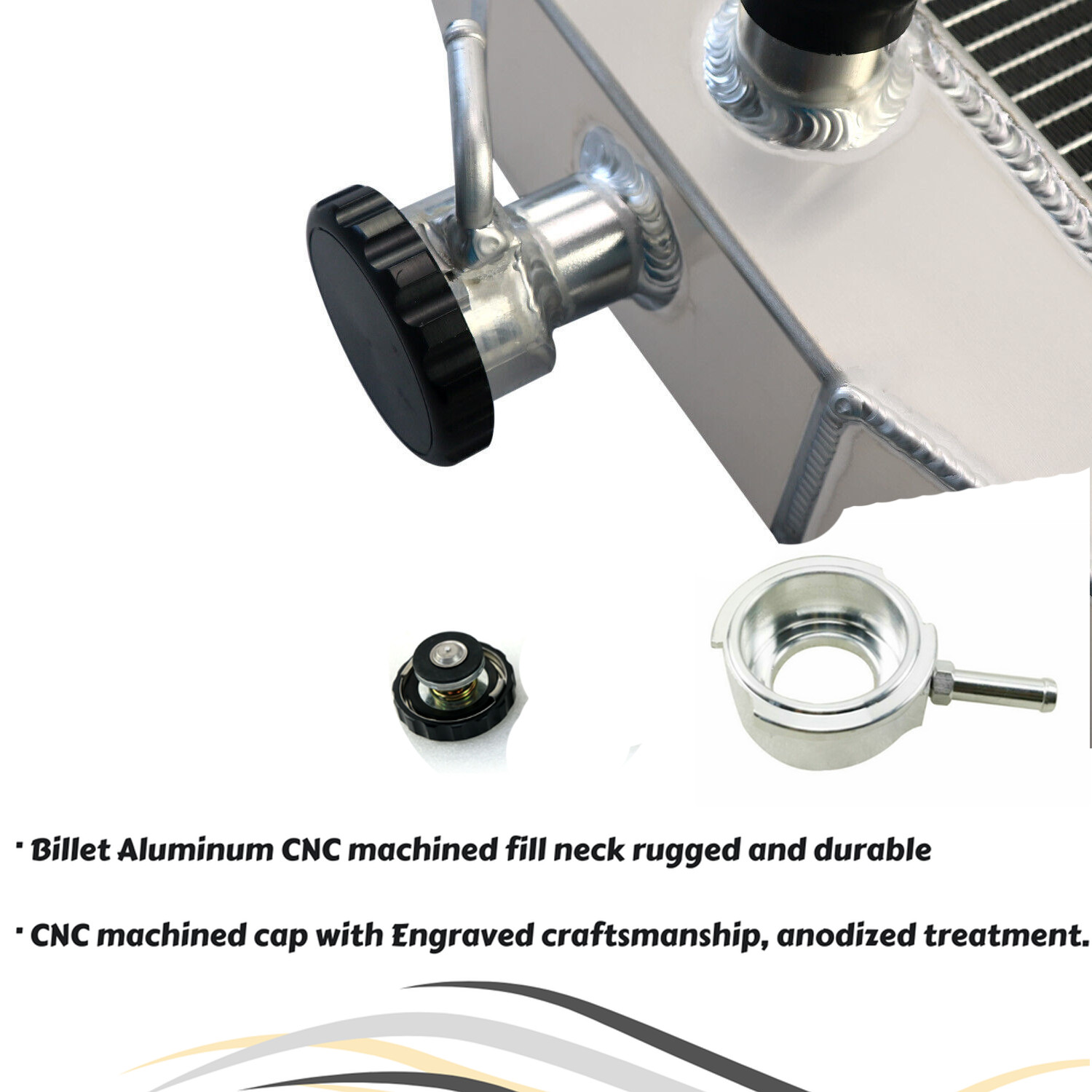 · Billet Aluminum CNC machined fill neck rugged and durable