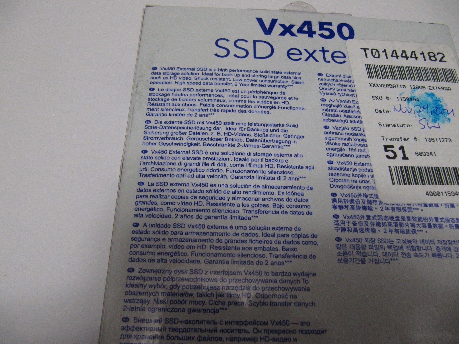 Verbatim External SSD Portable Hard Drive Store'n Go 128GB USB 3.0 Vx450 Solid State Drive