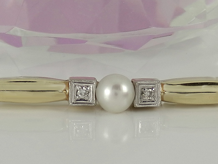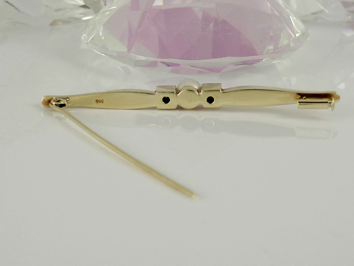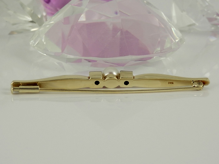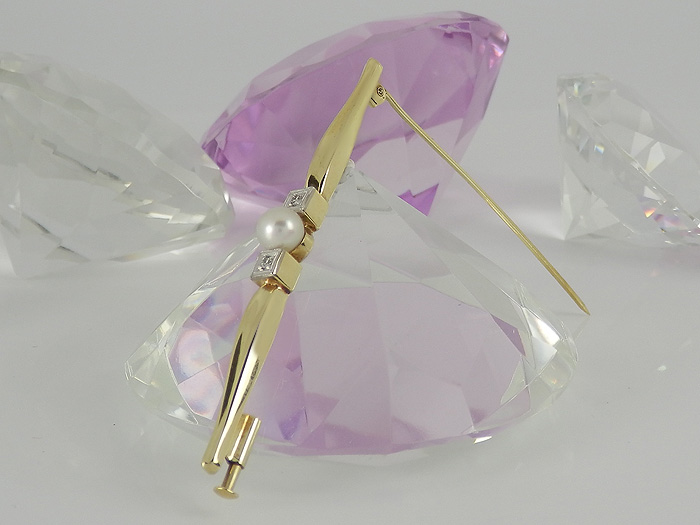 Anstecknadel Vintage in 585/- Gelbgold mit 1 Zuchtperle + 2 kl. Diamanten