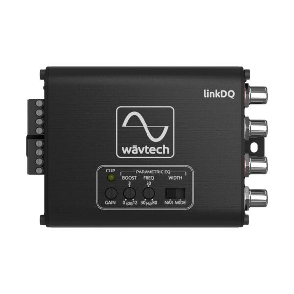 The linkDQ has the same class leading LOC and line driver that are the core DNA of all Wāvtech products. The linkDQ features an adjustable parametric EQ with narrow or wide range selection, allowing corrections to any low frequency deficiency that may be present in a factory audio system. It features auto turn-on via DC-offset or Audio Signal Detect, either of which can be easily defeated by the convenient jumpers on the end panel.