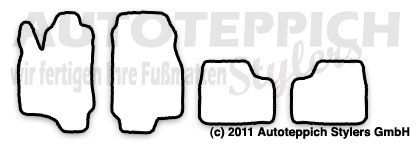 Die Fußmatten werden für Sie passgenau in Wächtersbach/Hessen gefertigt und mit unserem Versandpartner DHL zu Ihnen versendet. Es handelt sich hierbei nicht um Lagerware - alles wird für Sie unter Berücksichtigung Ihrer Farbwünsche für Sie gefertigt!