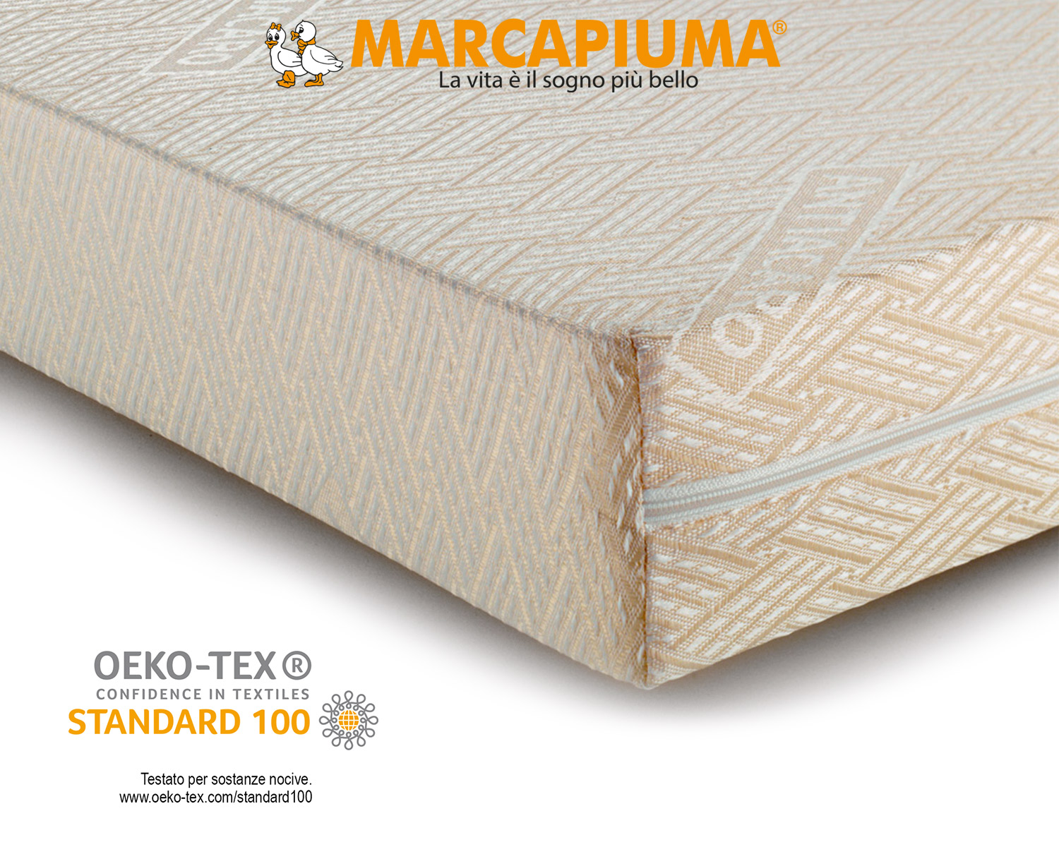 Per tutti i nostri materassi da bambino utilizziamo materie prime certificate CertiPUR® (Standard per la sicurezza sicurezza Salute dell’Uomo e dell’Ambiente), Oeko-Tex® (standard 100 classe 1 articoli per neonati 043820.O CENTROCOT) e Sistema di qualità ISO 9001:2015.