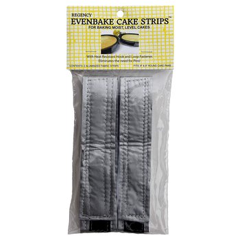 Metal pans can bake faster on the outside edges than in the middle. EvenBake Cake Strips heat pans evenly to bake cakes that are moist, inside and out, without cracking and doming. Cake layers that bake with flat tops are easier to frost, decorate, and stack without having to shave away the top surface.
