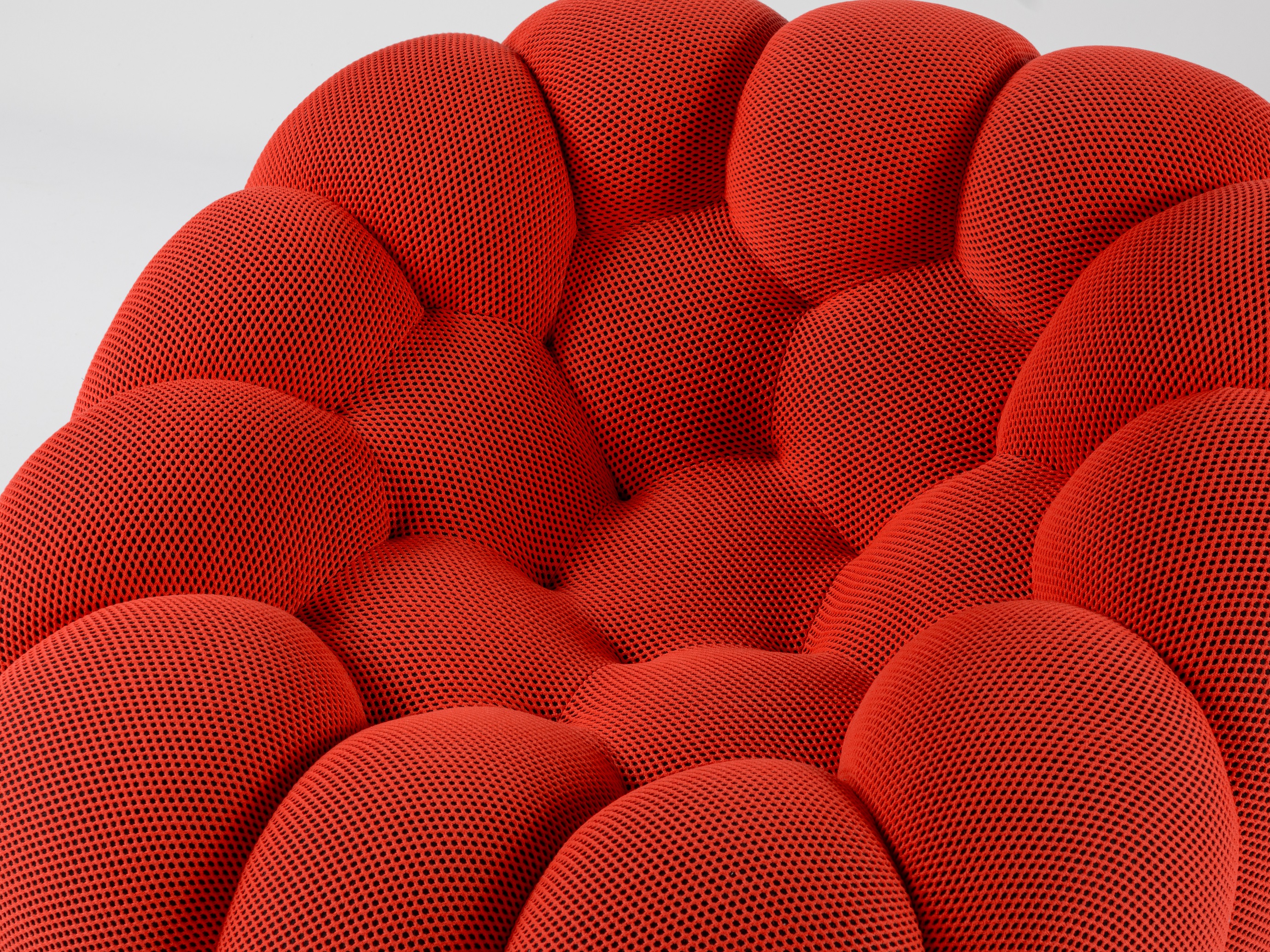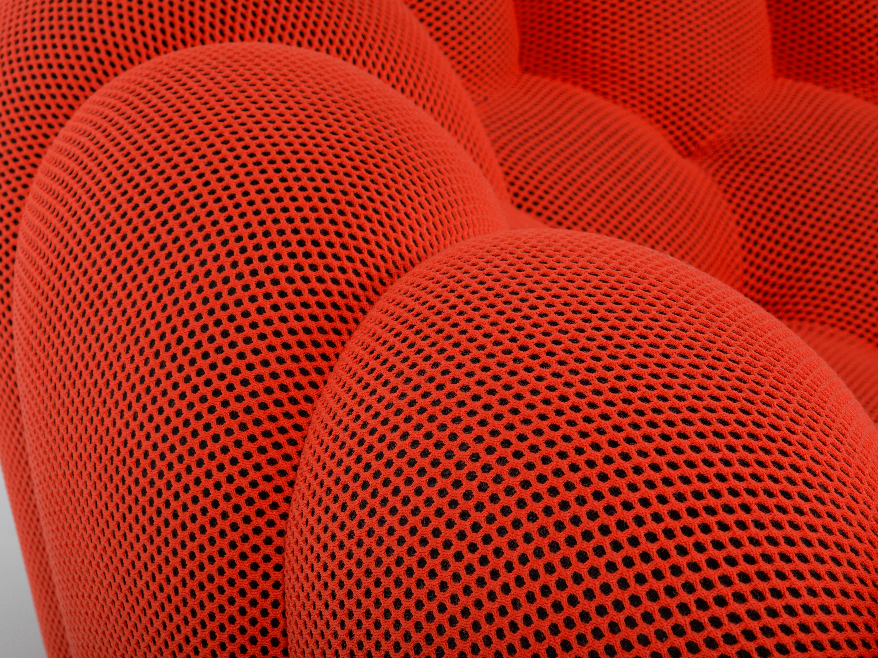 Bubble by Roche Bobois was designed by Sacha Lakic. Bubble embodies the harmony of innovation, purpose, and feeling. Its design, which was fully handmade and influenced by natural and mineral forms, called for the creation of particular stretch textiles that would properly fit its rounded curves. The Bubble series is a recognizable design in the Roche Bobois collection thanks to its distinctive form. Manufactured in Europe.