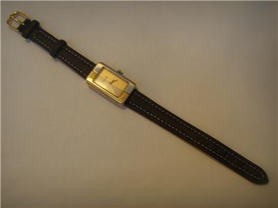 MATERIAL : GOLD & SILVER TONE METAL / LENS / SWISS MOVEMENT / LEATHER STRAP / GOLD TONE BUCKLE.