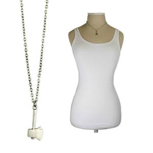 Burnished silver ton chain necklace with 3D hatchet pendant.