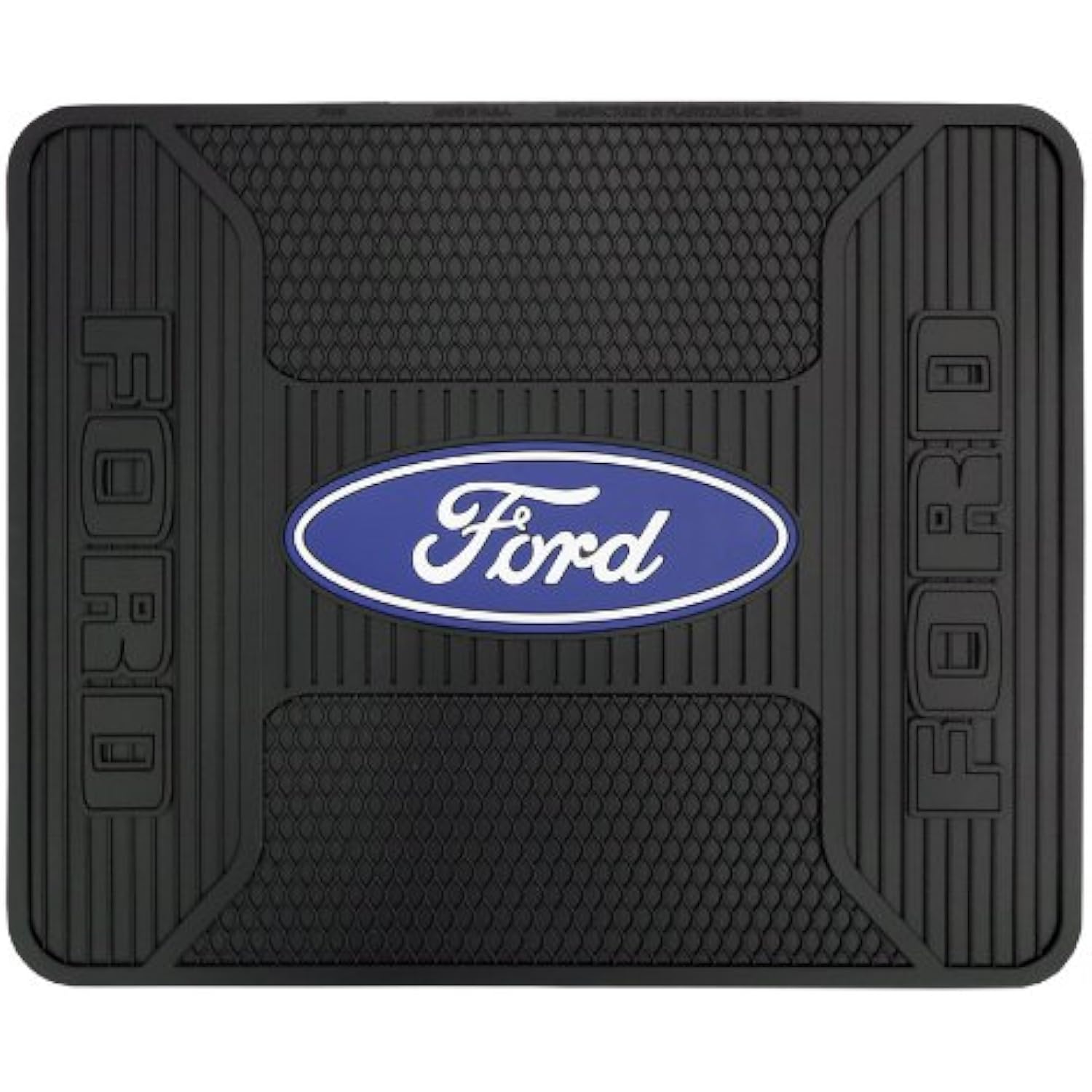 This Ford 'Elite Series' Utility mat, by Plasticolor, measures 14" x 17", and can be used to provide rear floorboard protection in your vehicle, or for just about any other surface, such as on a desk or table, under pet dishes, or on top of a workbench.