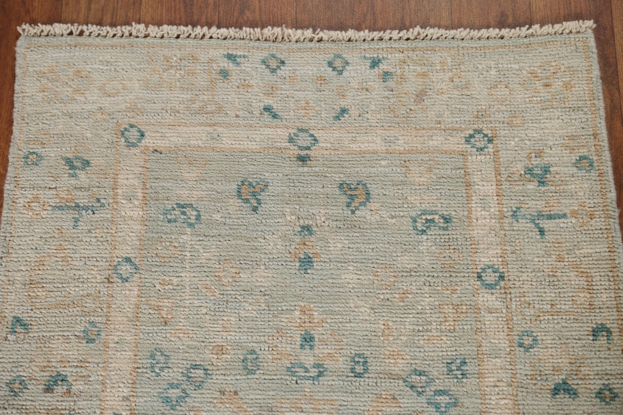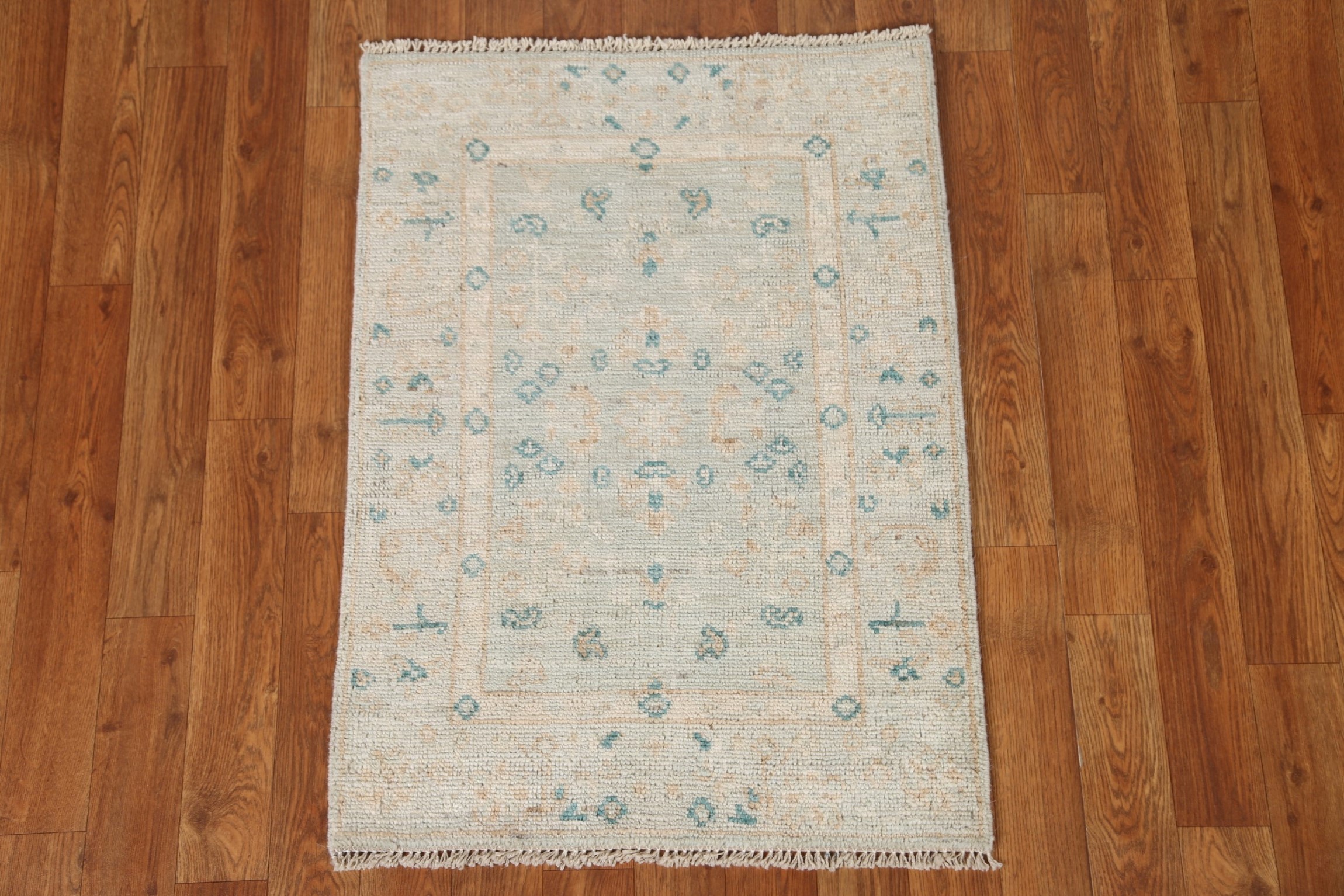 Muted Geometric Oushak Turkish Small Rug 2x3 Hand-knotted Wool Carpet