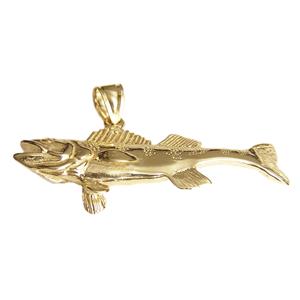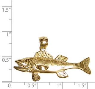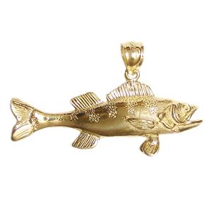 - New 14k Yellow Gold Solid 3-D Walleye Fish Pendant.