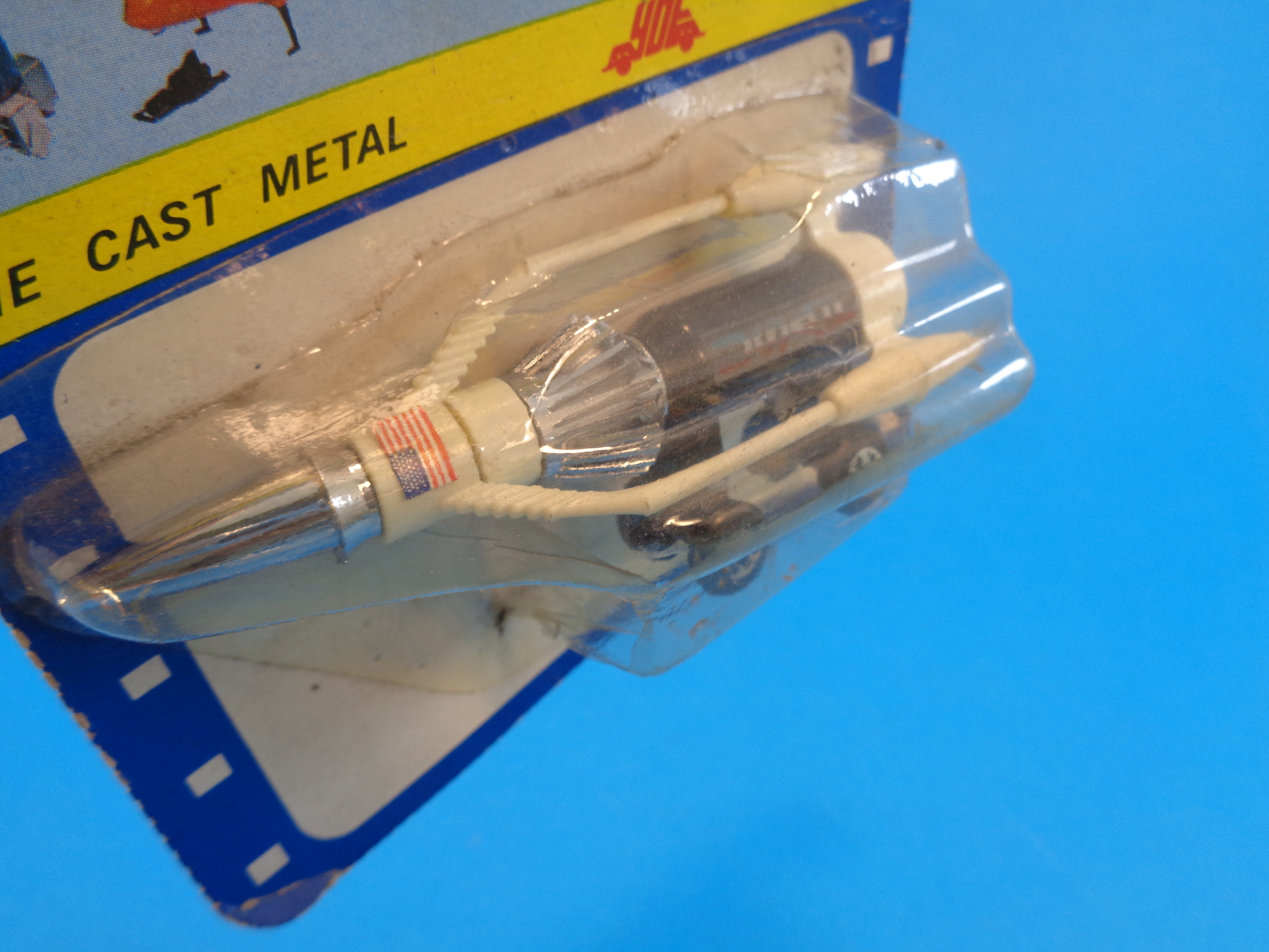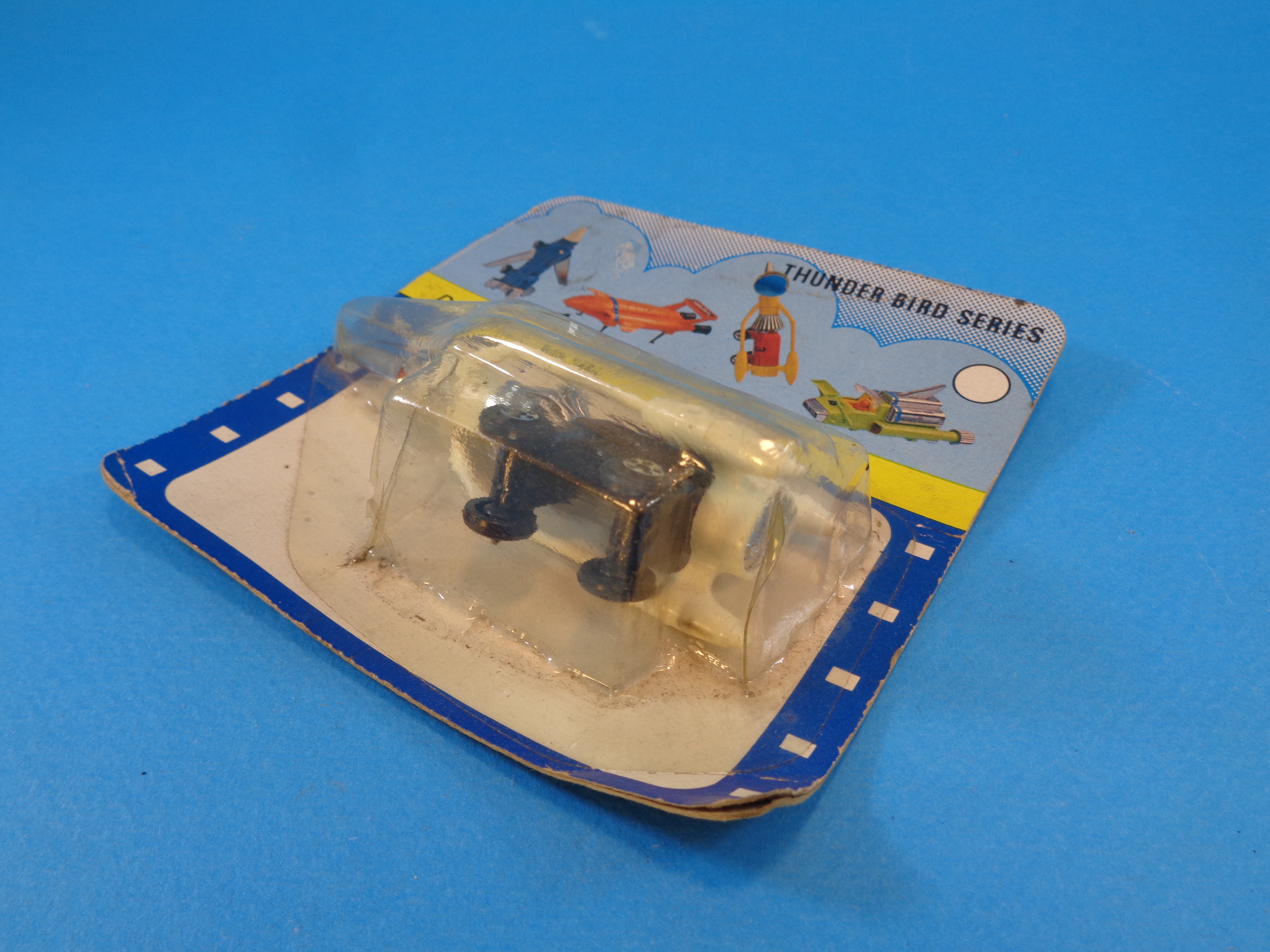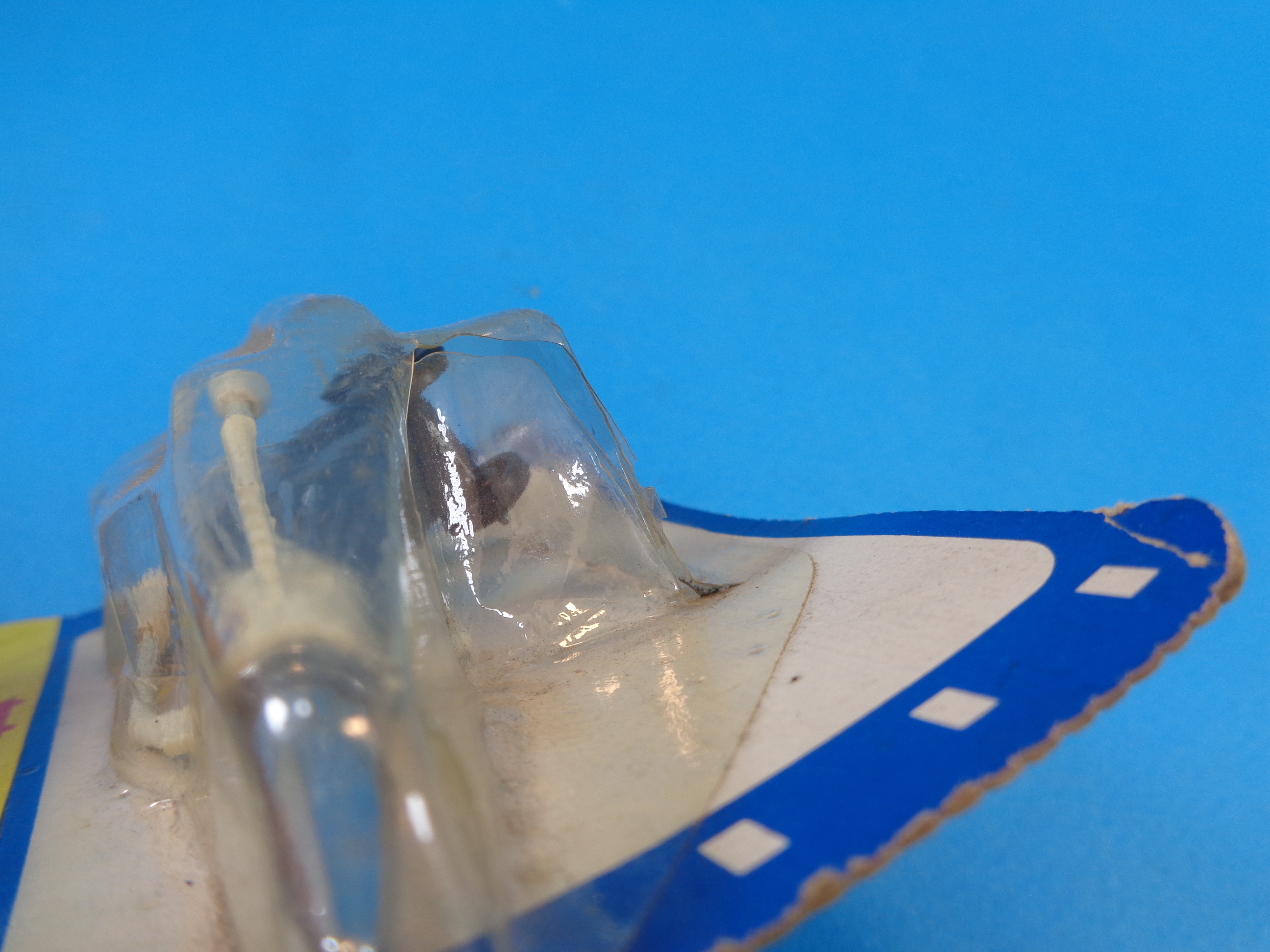It's in unused condition, from an old toy store's stock. The card is somewhat wrinkled with folds and wear. The blister bubble has a cut. Item somewhat dirty.