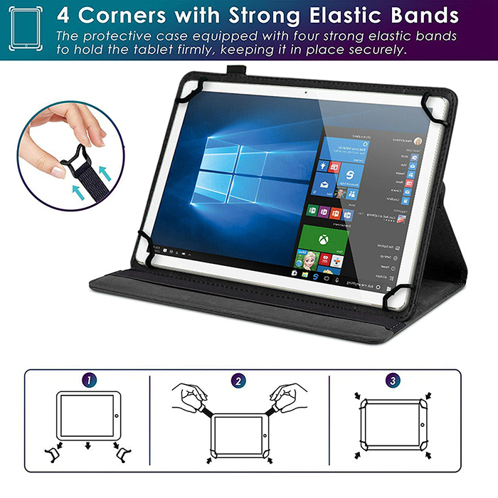 - 4 verstellbare Halteclips sichern Ihr Tablet in dem Cover ohne es zu verkratzen.