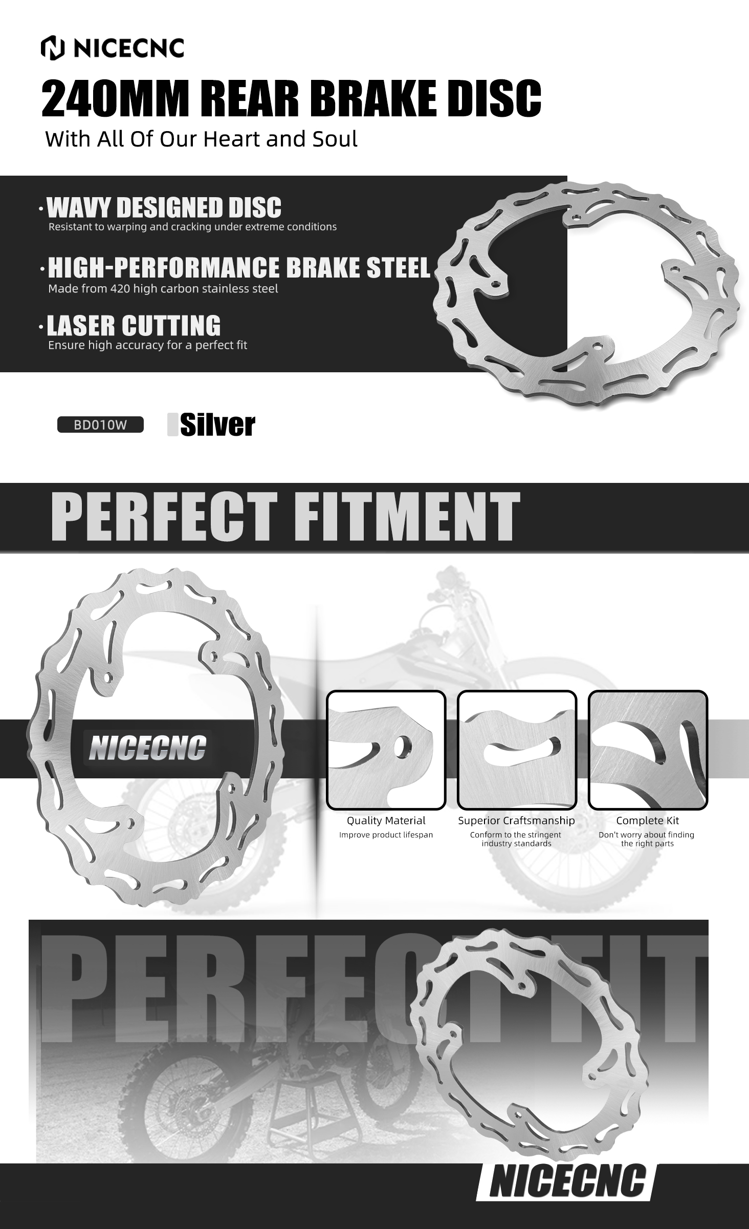 -- Wavy & Slotted designed disc to help keep pads clean and provides best heat dissipation performance