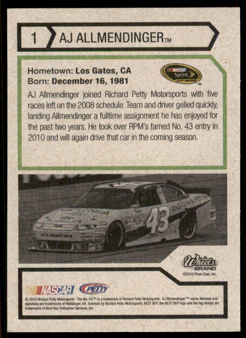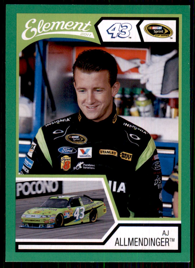 | Description: | AJ Allmendinger | | Category: | Racing | | Year: | 2011 | | Product: | Wheels Element | | Set: | Green Border | | Card Number: | 1 | | Dimensions: | 3½" x 2½" |