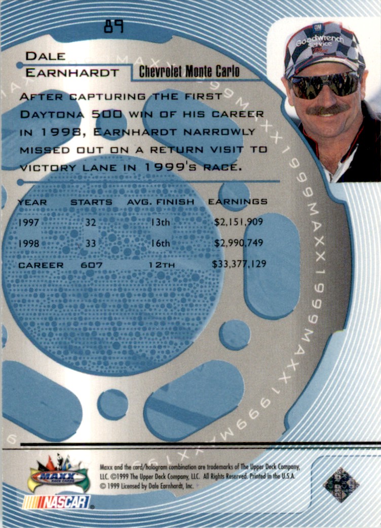 | 1999 Maxx Race Cards 89 Dale Earnhardt |