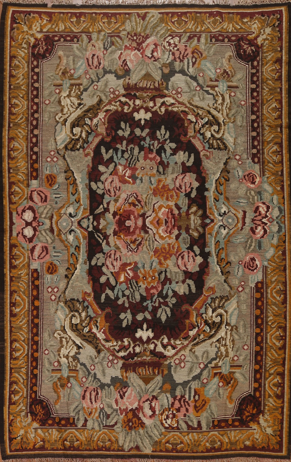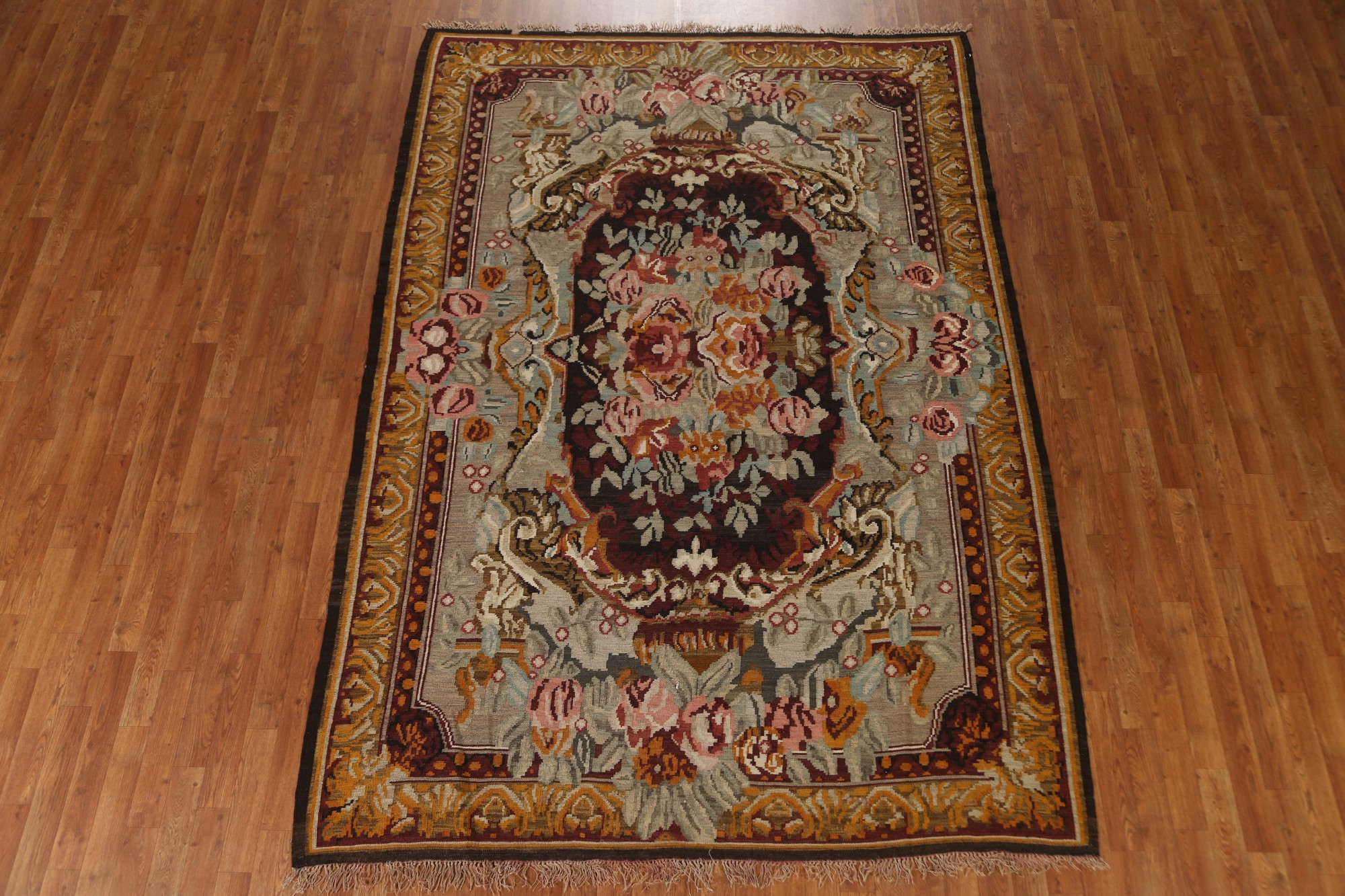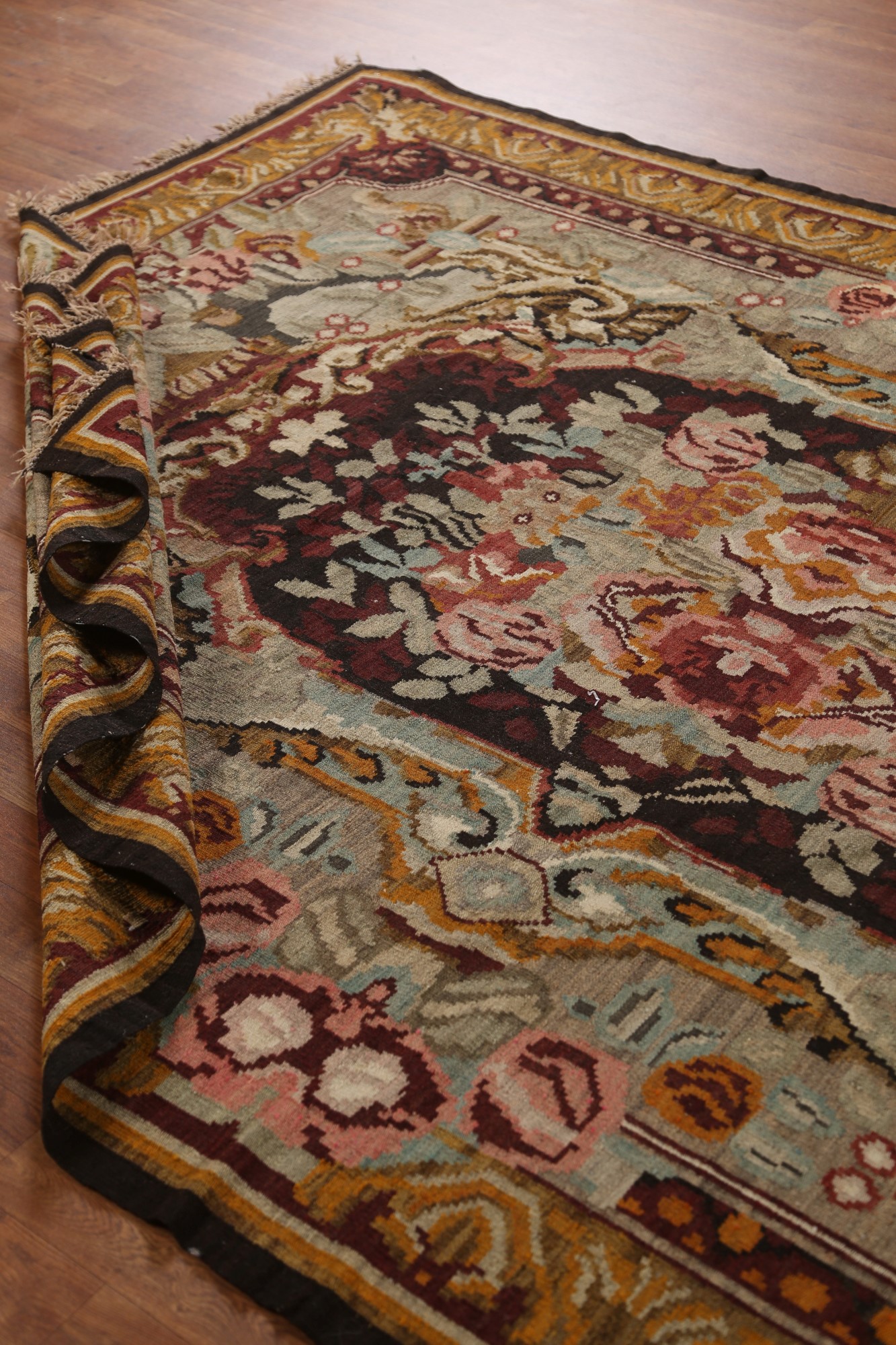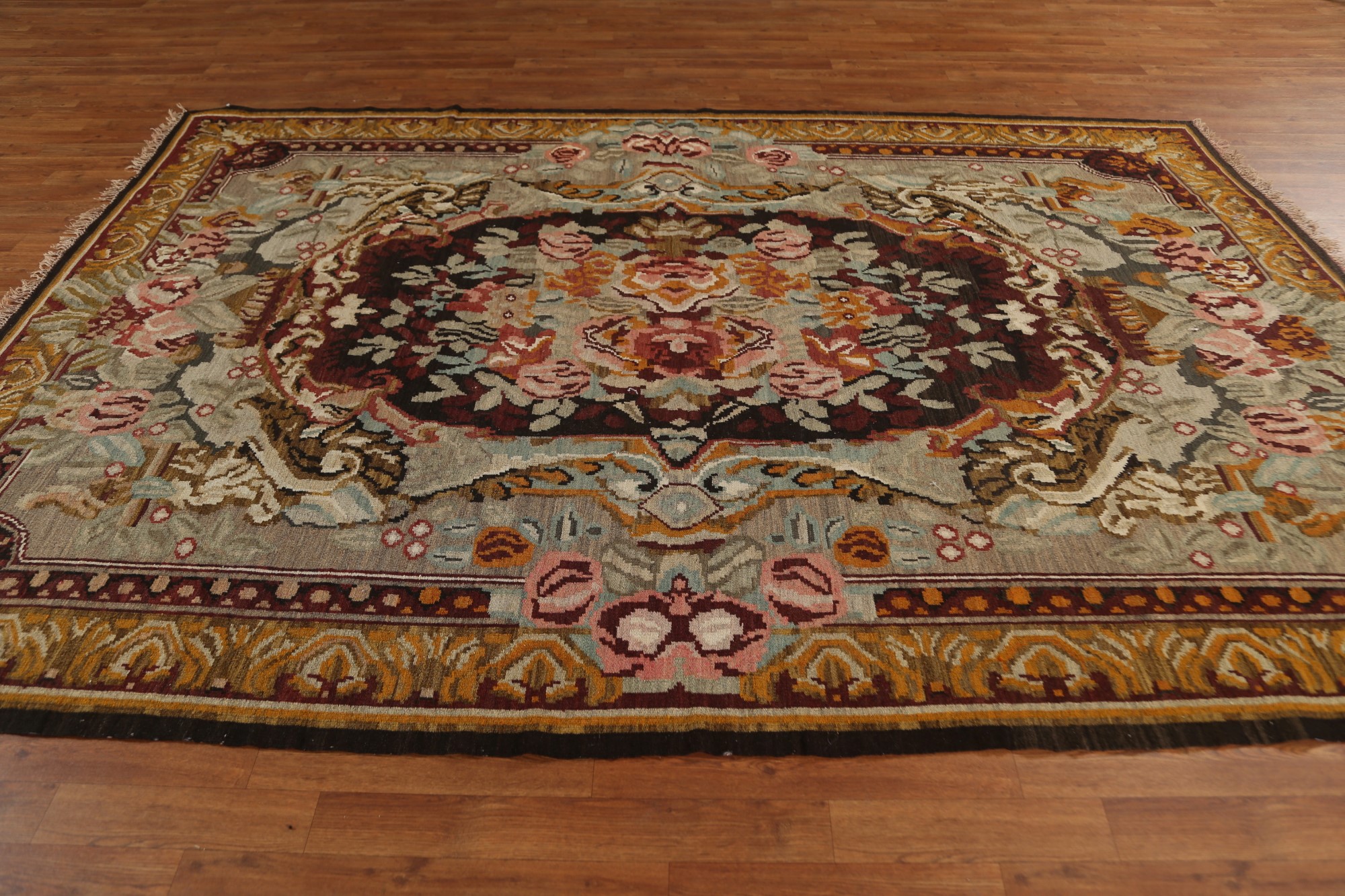 Victorian Style Kilim Rug Floral 7x10 Turkish Flat-woven Carpet