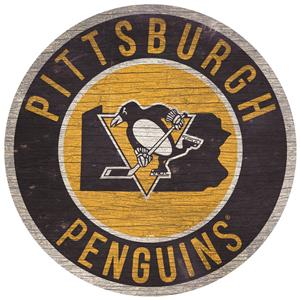 Pittsburgh Penguins 12 Inch Wood Sign Round State Design [NEW] NHL Cave Wall |