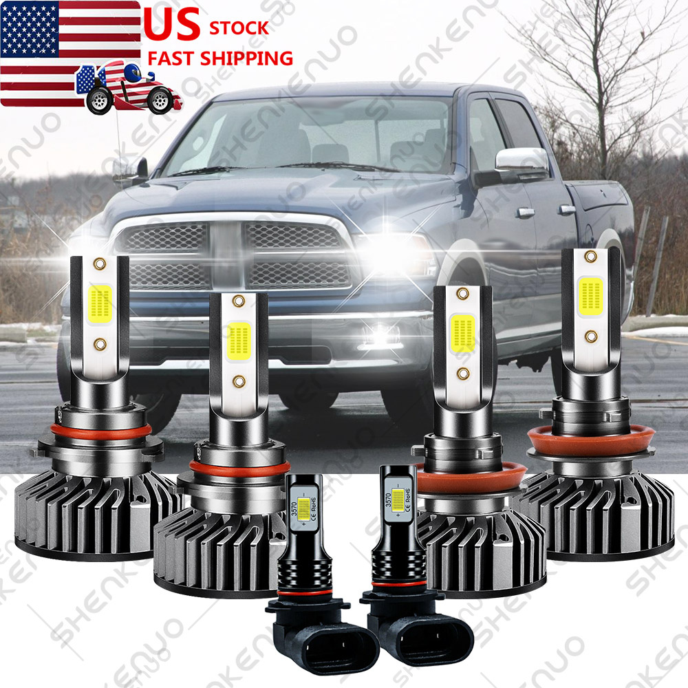 For 2016 2017 2018 Dodge RAM 1500 2500 3500 Led Headlight Hi/Lo+Fog light Bulbs