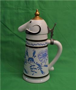 WEBCO CERAMARTE Utica Club Schultz & Dooley Blue FLOWERS Figural Lidded Beer Stein