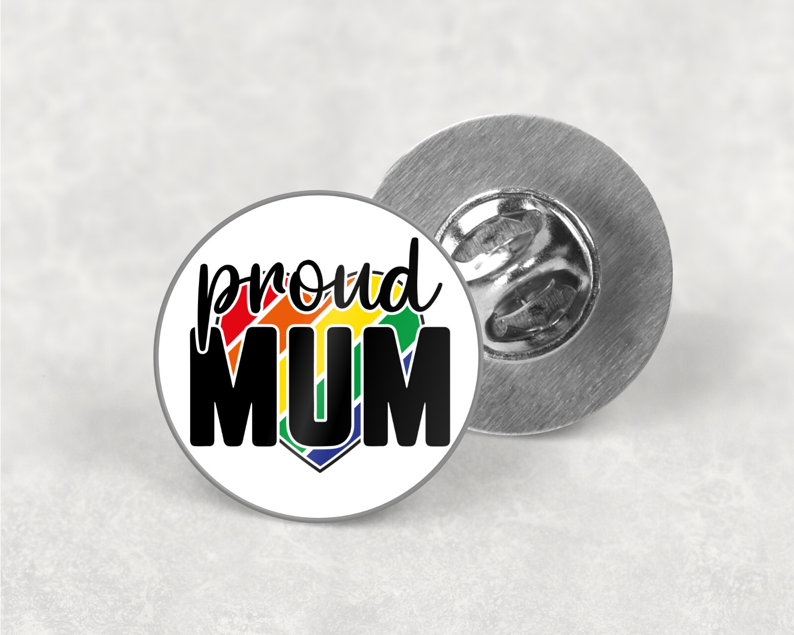 Nickel plated metal lapel badges with low profile rim and clutch pin on reverse and printed in the centre.