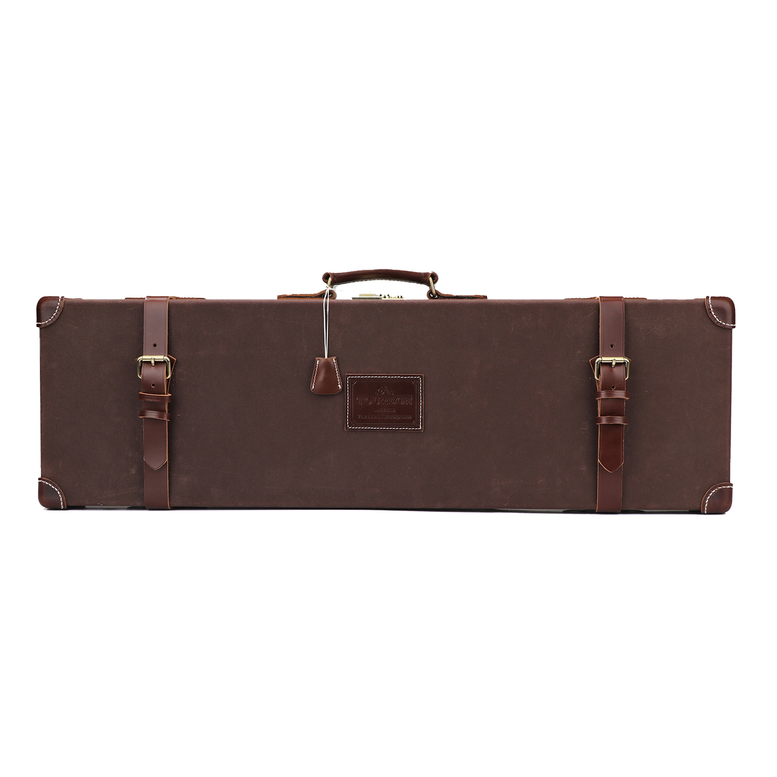 The classic English toe-under design enables this case to hold the gun securely and at the same time is much more compact and lighter than a traditional case. The durable canvas is 100% cotton and trimmed with harness leather. The inside is lined in traditional burgundy wool felt with no exposed hardware or screws to damage your firearm. Hardware is solid, heavy brass (not plated).The barrel compartments can be adjusted by filling them up with spacer blocks. So it can fit 28 inches, 30 inches, 32 inches 12GA or 20 GA shotgun barrel.