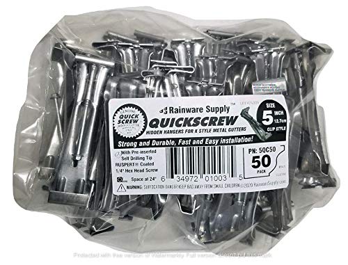 Quick Screw 5" 50 Pack Premium Hidden Rain Gutter Bracket Hook Hangers with screw clip style