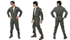 Mens Maverick Costume Top Gun Adult Flight Suit Film Fancy Dress Outfit Large XL