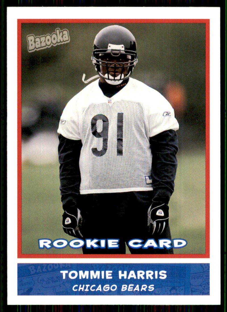 | Description: | Tommie Harris | | Category: | Football | | Year: | 2004 | | Product: | Topps Bazooka | | Team: | Chicago Bears | | Card Number: | 206 | | Rookie: | Yes | | Dimensions: | 3½" x 2½" |