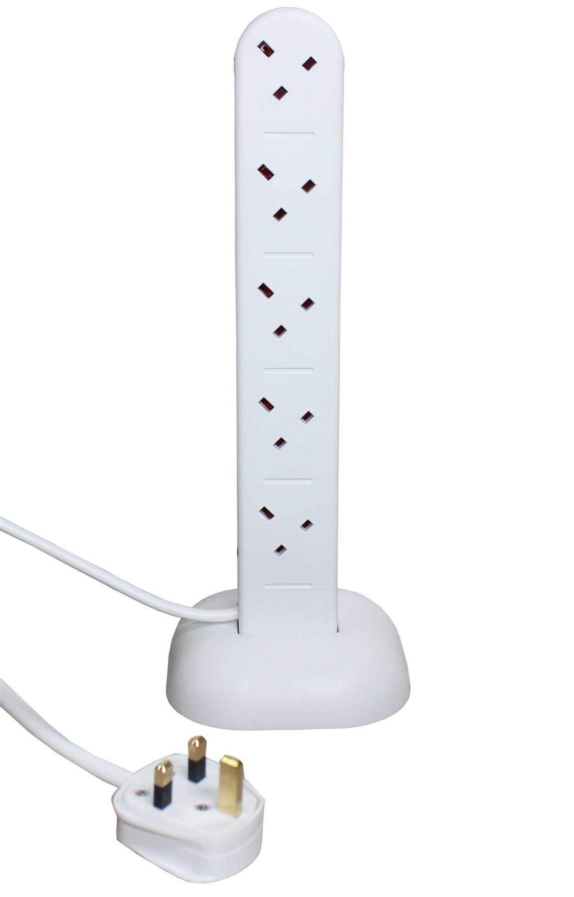 This clever extension tower will convert one of your single plug socket/mains outlet into 10 individual sockets enabling you to plug in up to 10 different low powered devices at the same time. Extension leads can be unsightly, often sprawled across a floor with wires coming out in all directions. With an extension tower like the ST10B you can tidy your cable set up and create an organized and safer space. The base of the tower is detachable, so if you want to convert to a horizontal extension gang then you can do so. This model features diagonally angled plug sockets which allow space for larger plugs alongside each other. Always be cautious about what you are plugging into electrical sockets. Like many extension leads, this extension can take up to 3000W.. It is lightweight but durable, ideal for anywhere in the home or office. It is not for outdoor use. The internal components offer surge protection for all of your low powered devices, such as phones, lamps, computers, tablets. This extension lead will hold 10 UK 3-pin plugs. This is really useful for when there are not enough plug sockets in your room and is perfect for low powered items.