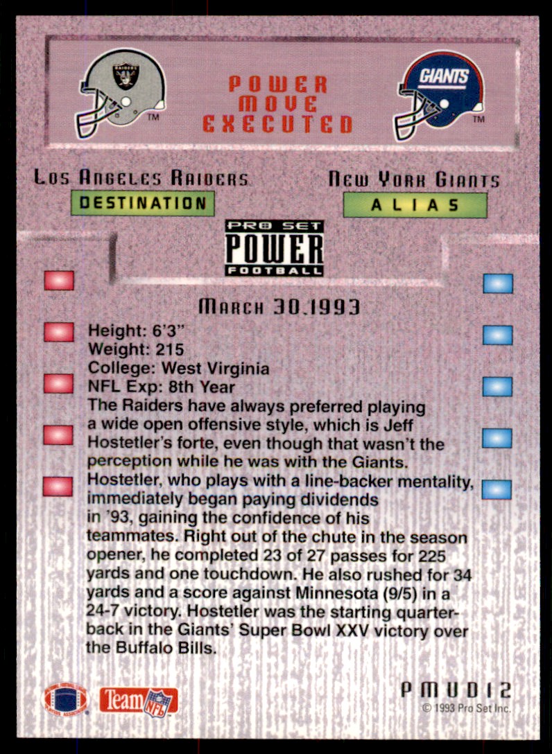 | 1993 Pro Set Power Update Moves PMUD12 Jeff Hostetler |