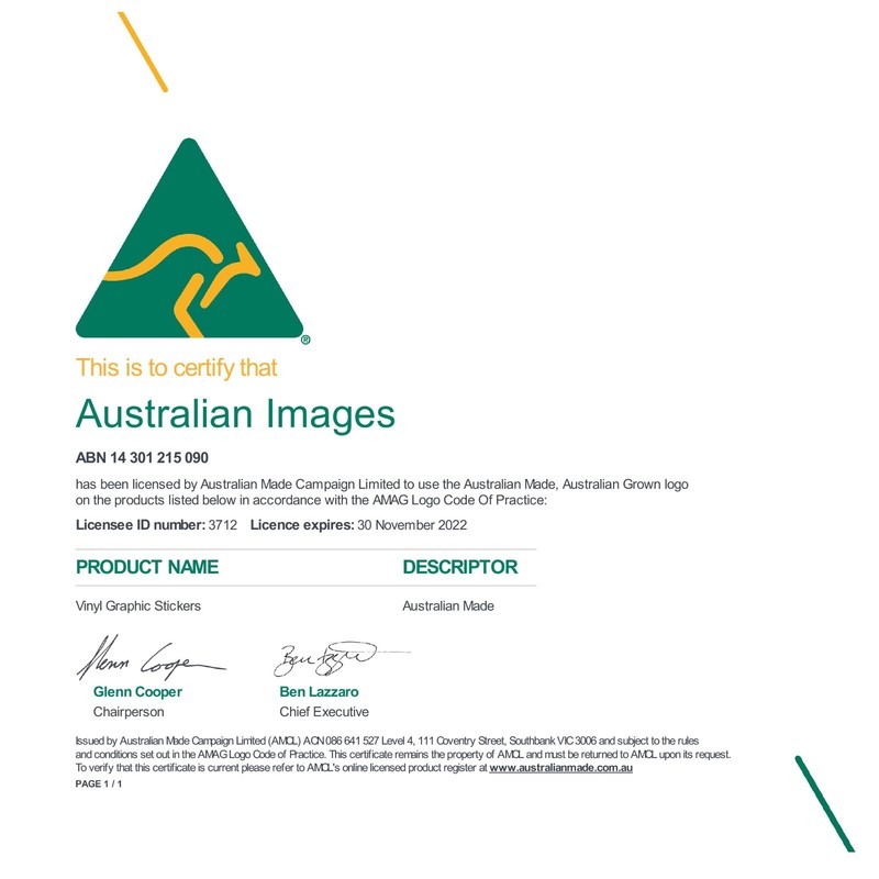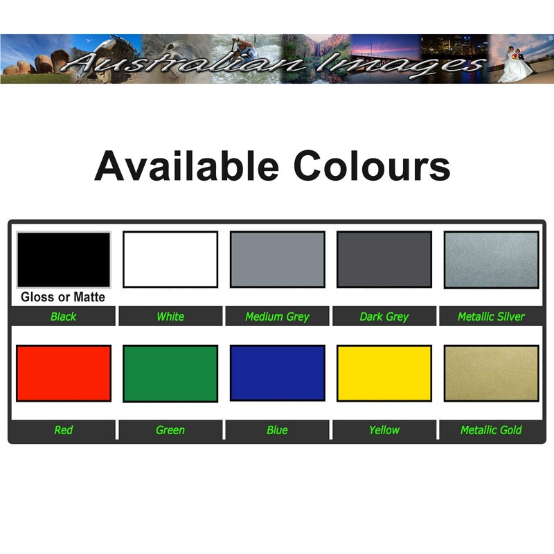 Choose from any of the listed standard text options. There is also a ‘custom text’ option. If you chose this version, you need to send a message with the desired text. Logos are also possible, so long as they will work with a cut-out design (ie, they can’t be overly complex or require multiple colours). If you want to uase a logo, send via eBay message or email through the Australian Images website.