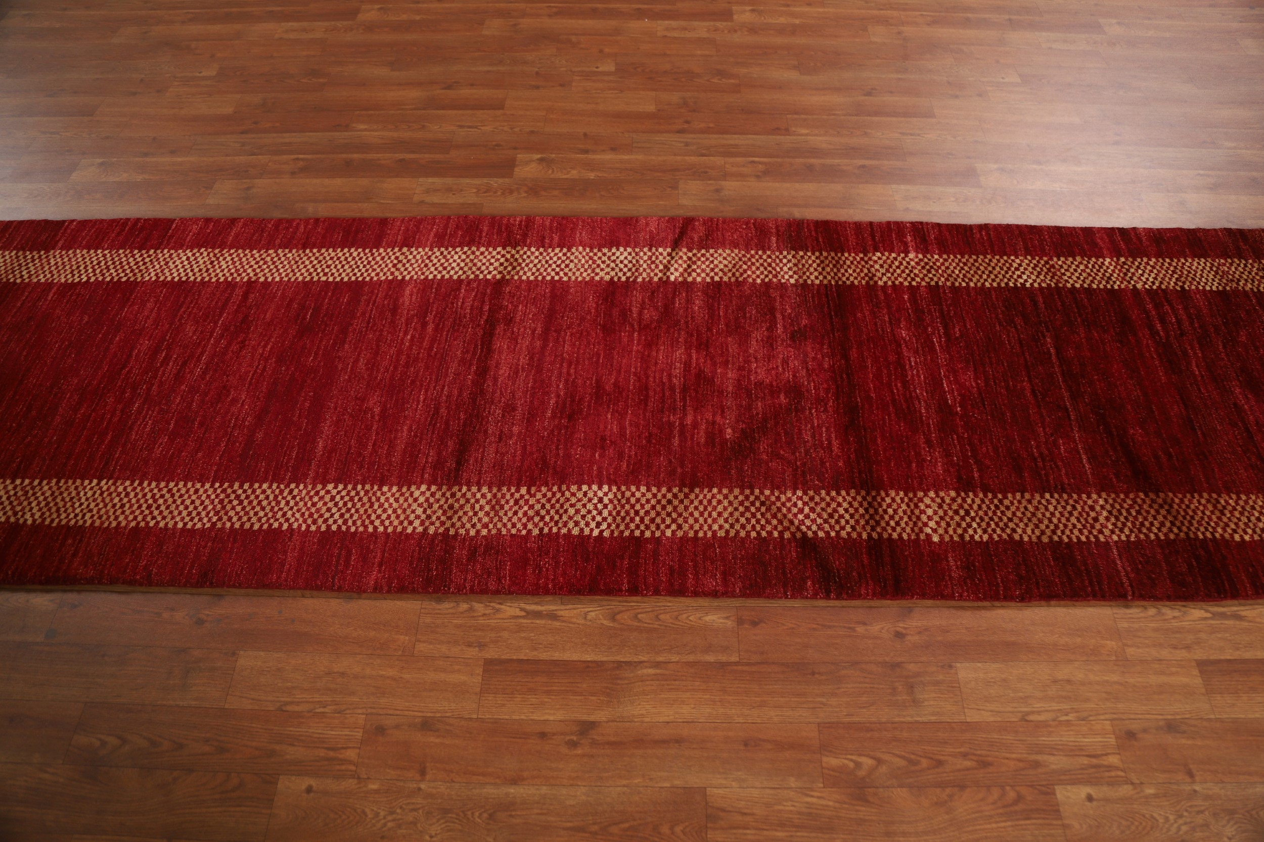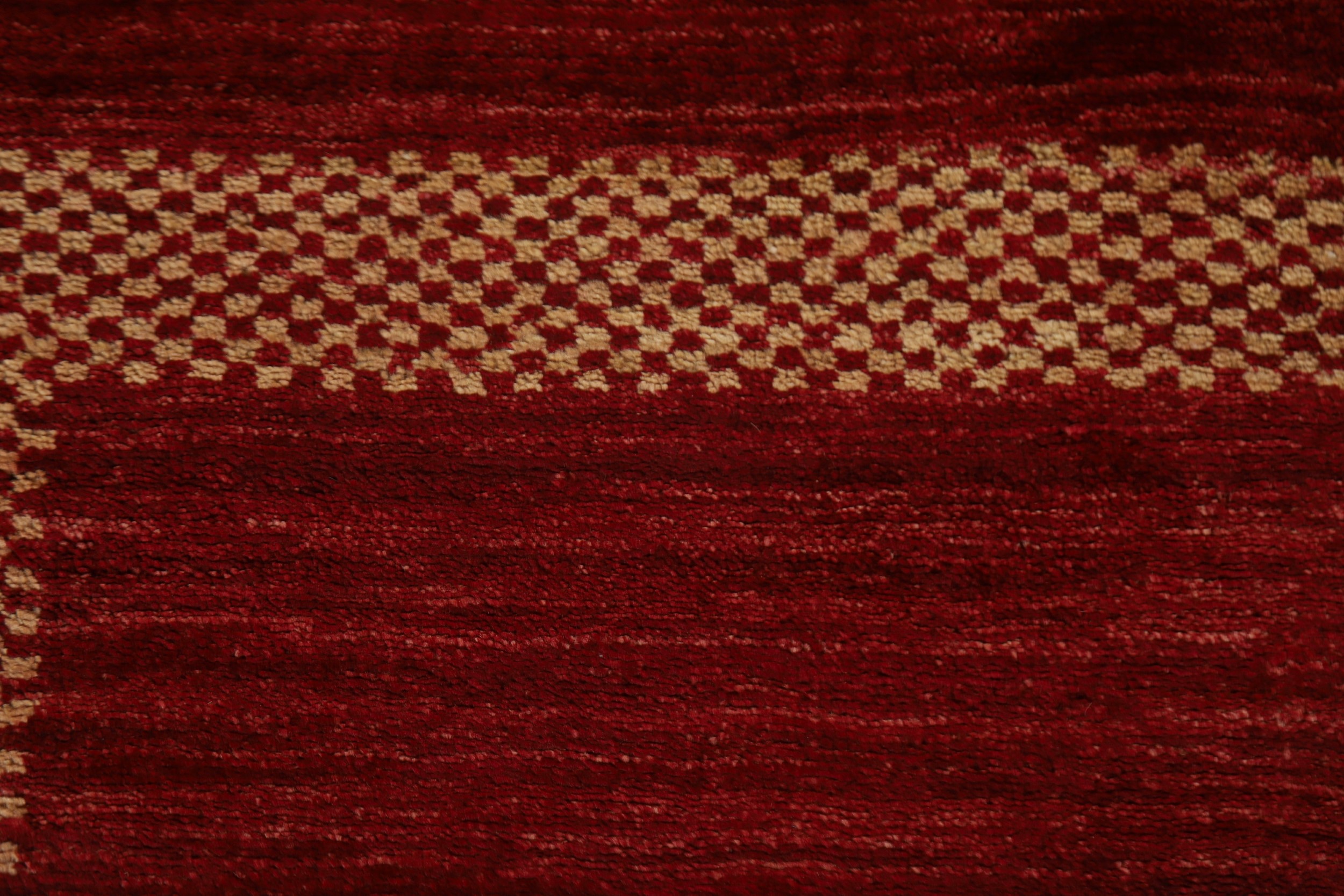 Bordered Modern Gabbeh 10 ft. Runner Red Rug Wool Hand-knotted 10' 1" x 2' 8"