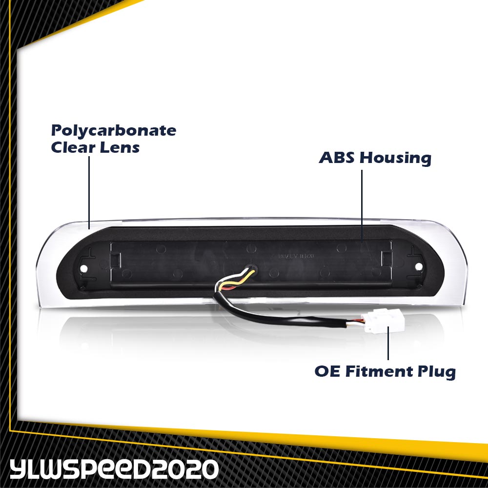Our Led third brake light is a quick and easy way to dress up your pickup truck. When lit, the bright LEDs (Light Emitting Diodes) are illuminated, and shine up to ten times brighter than standard light bulbs. Even when the brake is not pressed, the integrated cargo light (if equipped) gives off plenty of white light to view your gear in the truck bed. The Led third brake light has a durable polycarbonate lens with free form reflector, and available with either the Clear lens or custom Smoked lens.