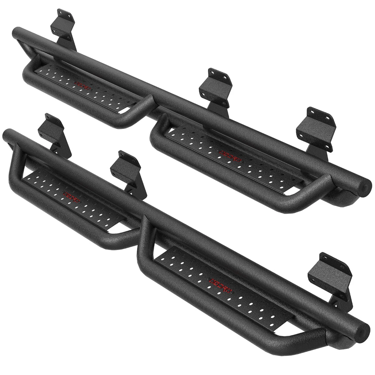Functional Convenience: Features two-stair layout & innovative 4-inch drop to provide better convenience for vehicles with lift kits and oversized wheel tires. Also allows for easier rooftop operation. The step plates are detachable and paintable for further customization. The geometric plate panel prevents mud sprays and allows for easy cleaning.