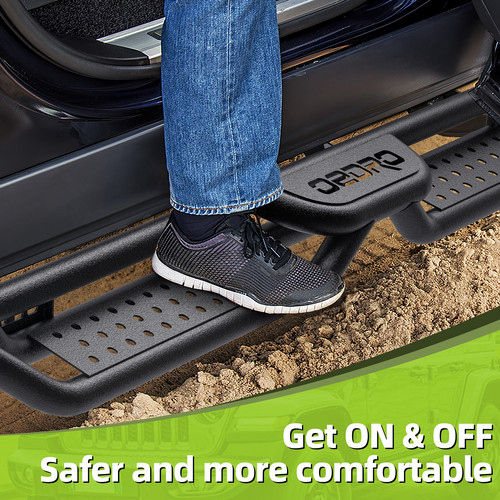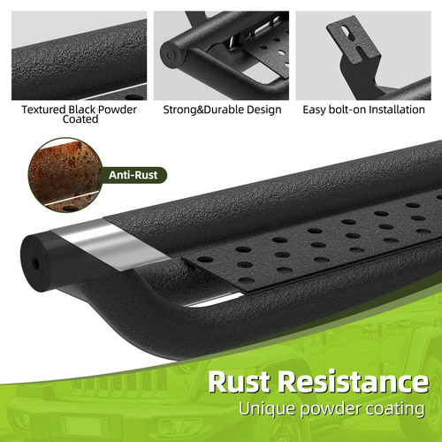 Strong and Durable Design: Unique powder coating offers exceptional rust and corrosion resistance so you can drive under any condition. The laser cutting step plate achieves a non-slipping step surface and reinforced grip. Proven to handle up to 550 lbs without bending.