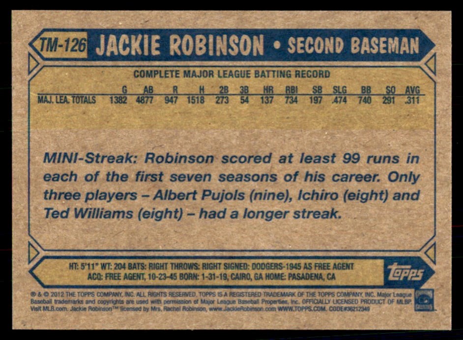| 2012 Topps Update 1987 Minis TM-126 Jackie Robinson |