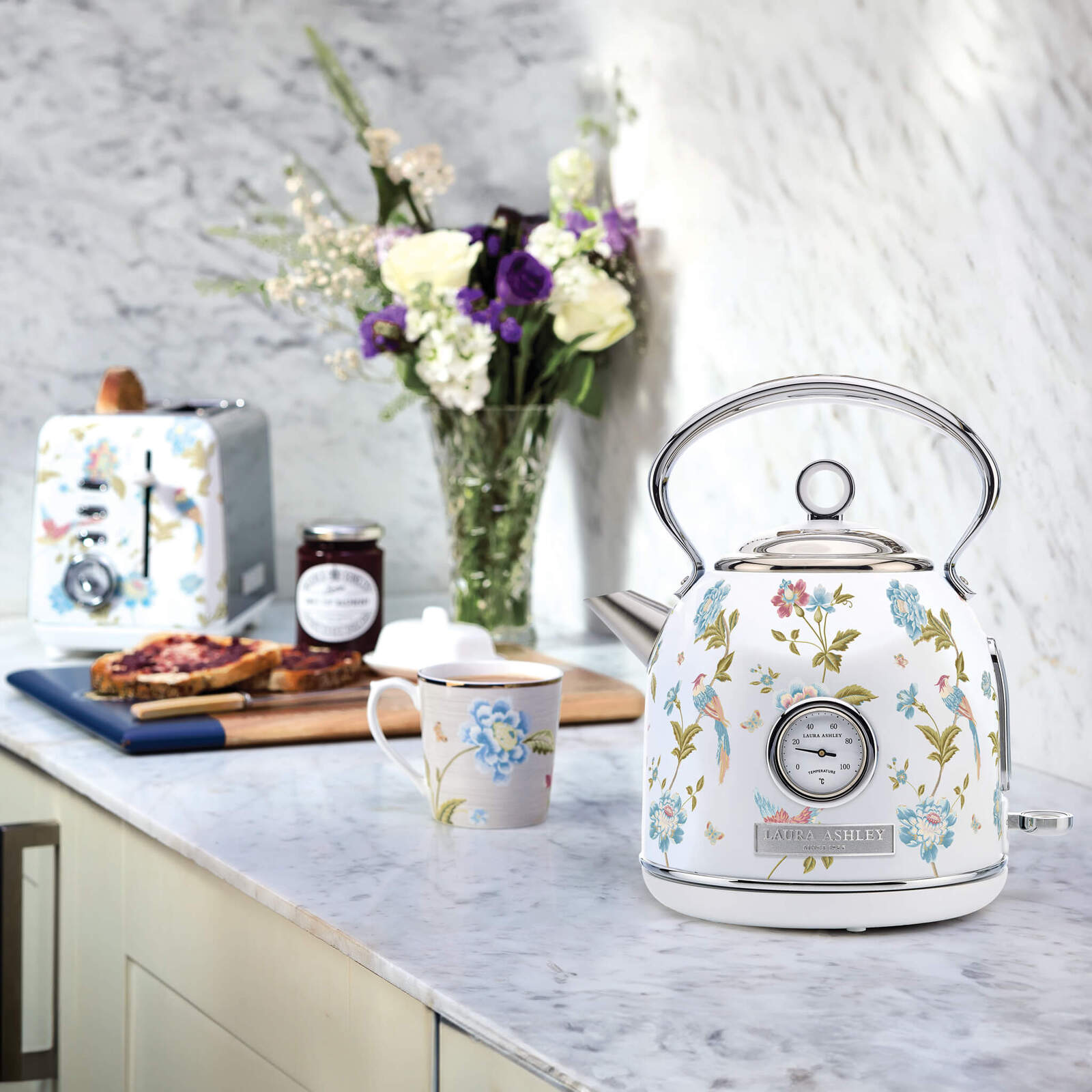 Laura Ashley Elveden 1.7L Stove Top Kettle and 2 Slice Toaster Combo White & Silver