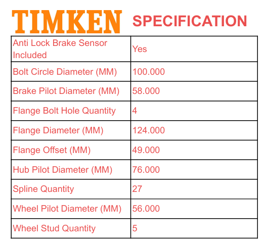 Timken Front Wheel Hub and Bearing Assembly