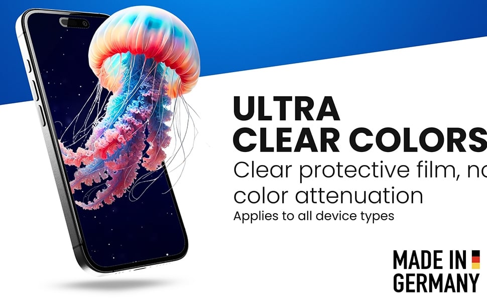 The FX-Clear film impresses with its crystal-clear transparency and remarkable scratch resistance, featuring a pencil hardness of 6H at 500g writing pressure. It is easy to apply and can be removed at any time without leaving residue. The film perfectly conforms to the display without compromising the user experience.