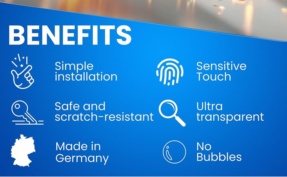 Thanks to its special coating, the screen protector reduces fingerprints and is resistant to dirt and grease. The functionality of touchscreens remains unaffected by the film, ensuring all features are fully operational.
